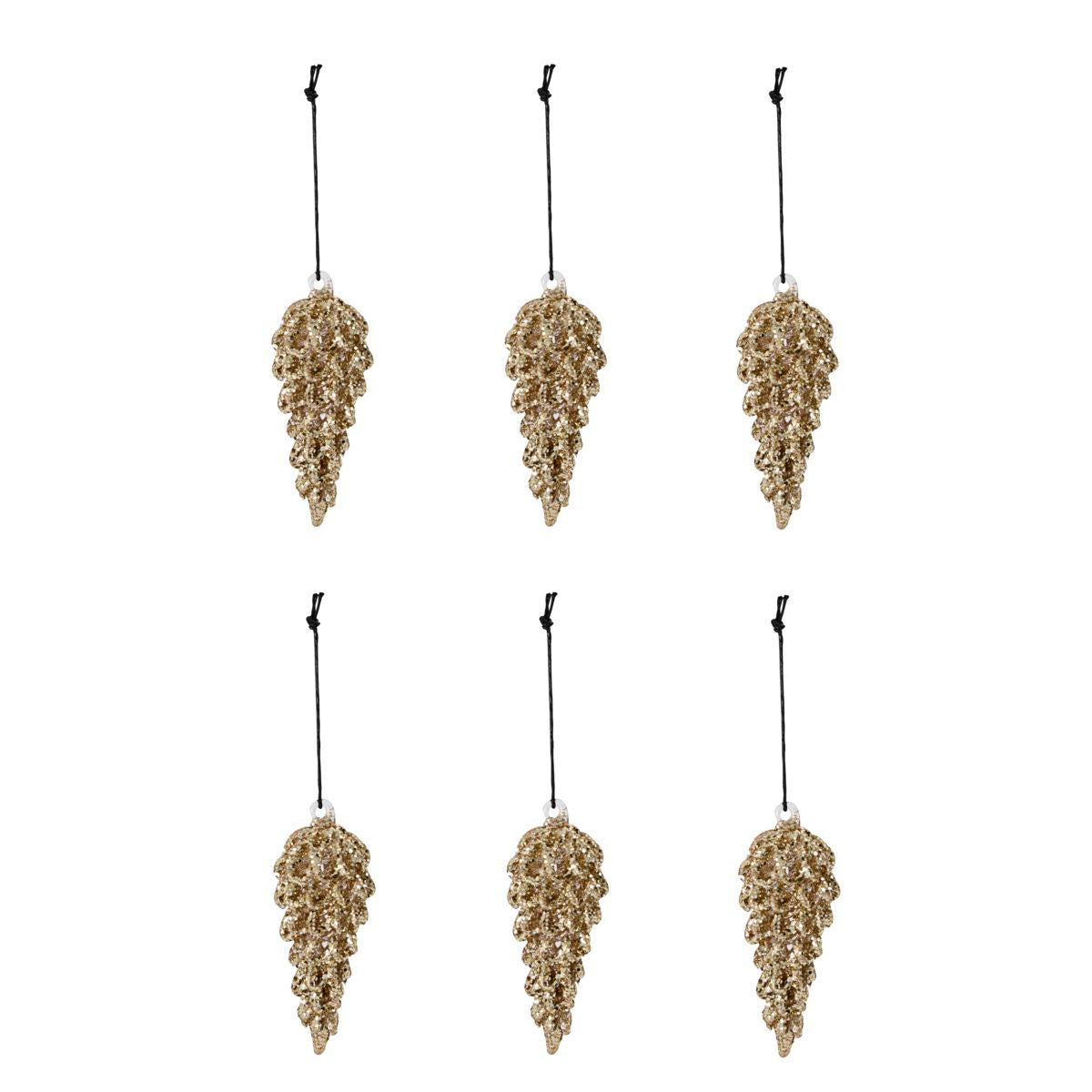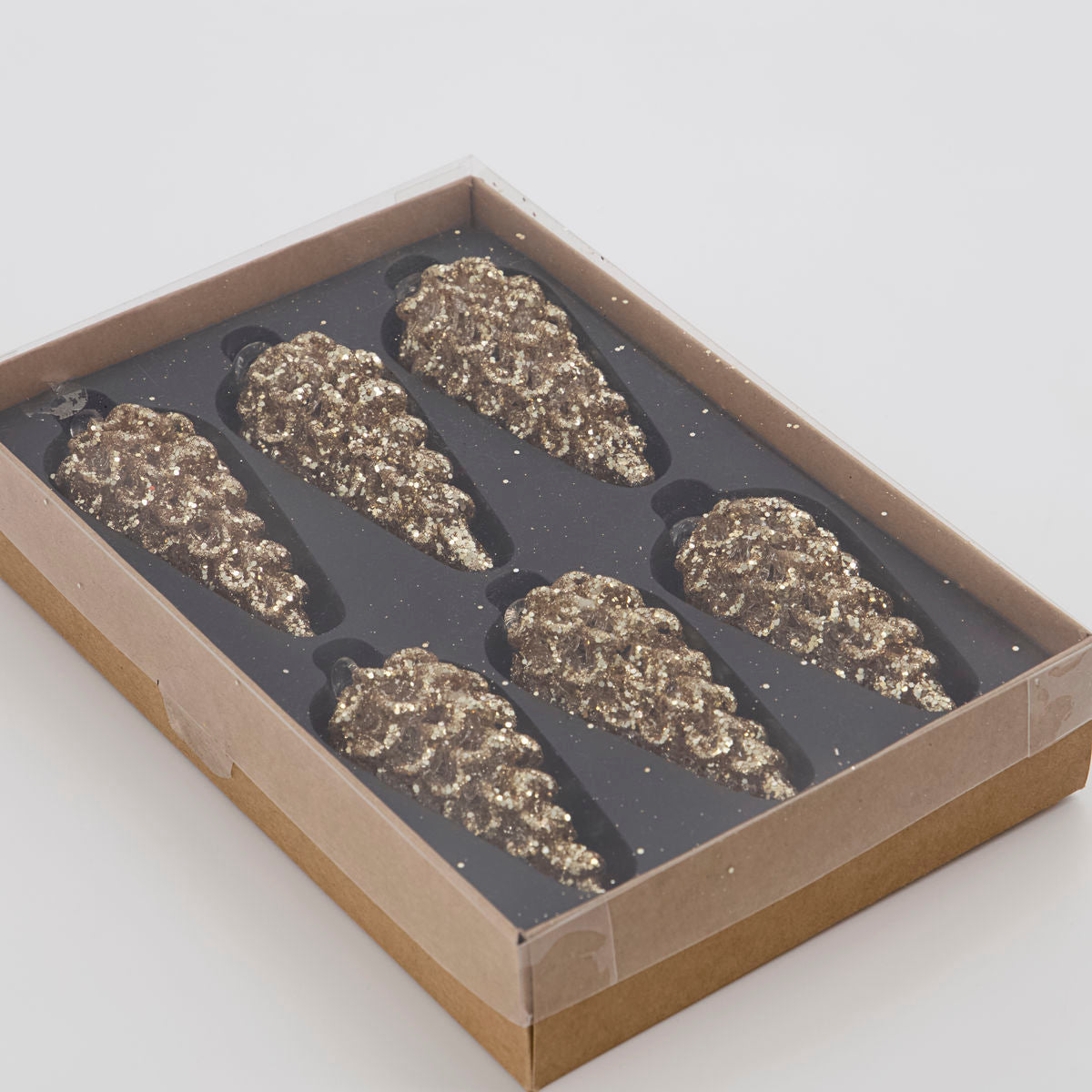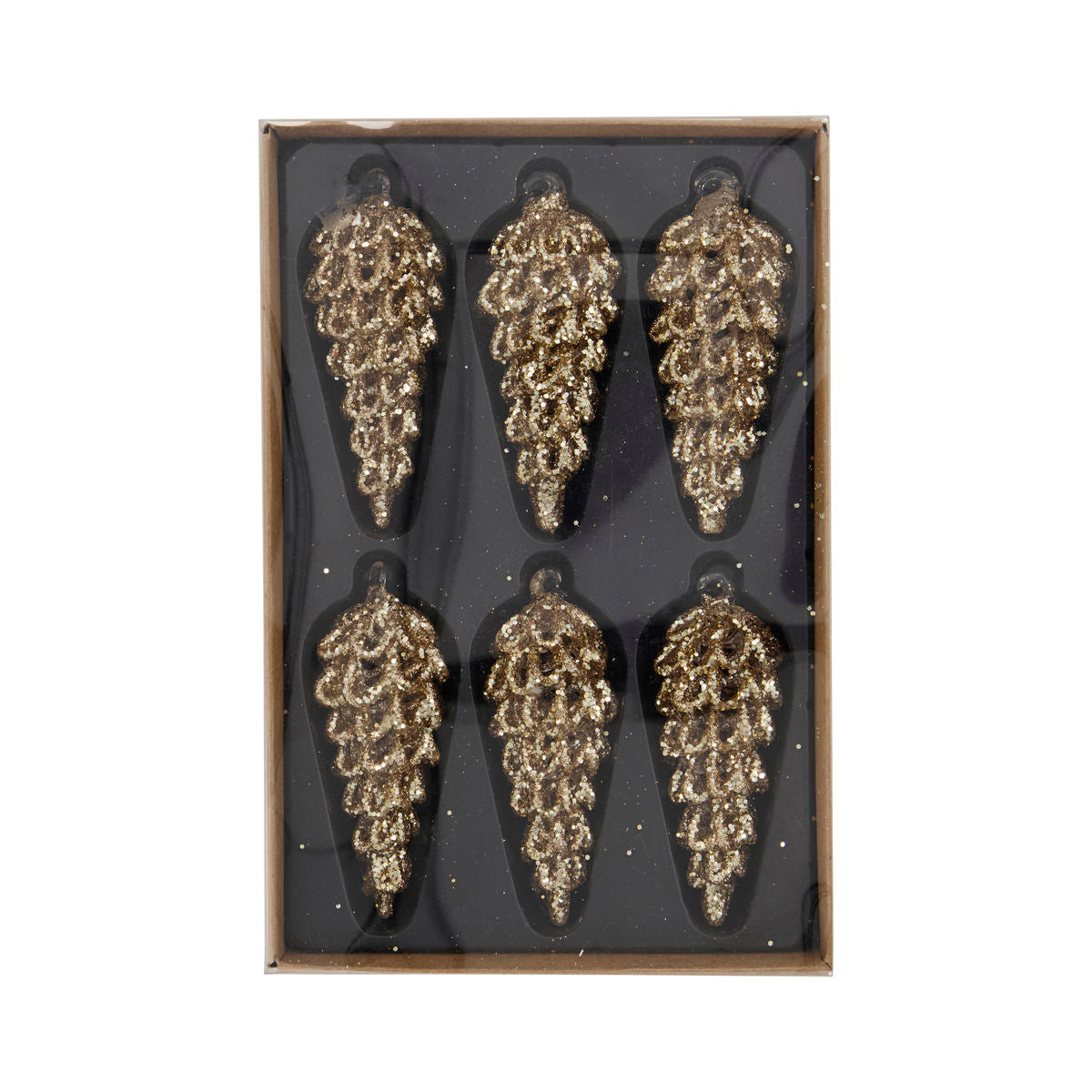 Set of 6 Gold Glitter Cone Christmas Ornaments