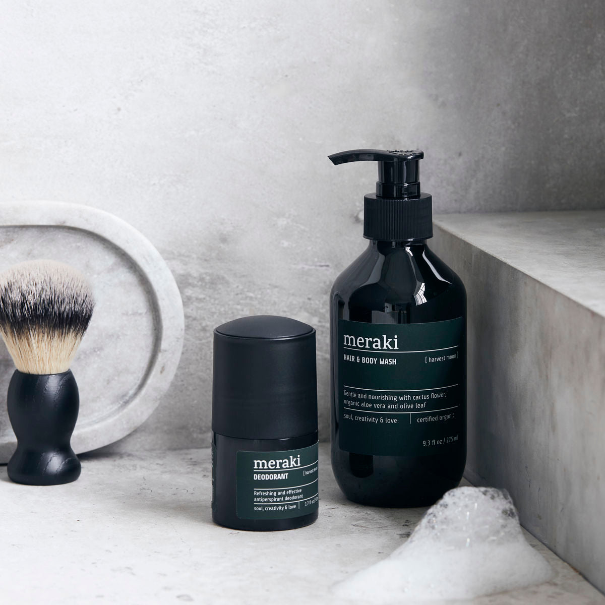 The everyday kit for those who want fewer products. This giftbox from Meraki contains the Harvest Moon hair & body wash which is certified organic. A wonderful combination that cuts down on the products you need. Its extracts from cactus, aloe vera and olive nourish and moisturise your skin. The anti-perspirant roll-on deodorant has the same fresh scent of rosemary and contains organic aloe vera and organic olive oil.