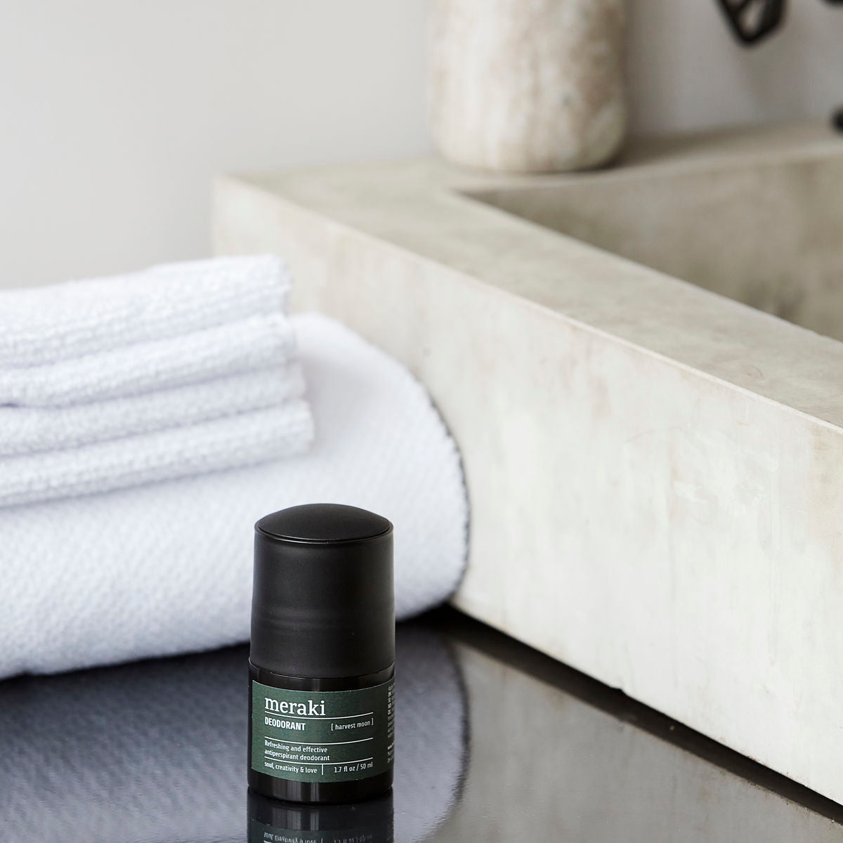 Feel fresh and comfortable all day with this antiperspirant deodorant, Harvest Moon from Meraki. The deodorant has a fresh scent of rosemary and keeps you dry - even when you are physically active or exercising - and is gentle to the skin. The deodorant contains a variety of organic oils that nourish and soften the skin. At the same time, it reduces sweat and odour. The Harvest Moon scent is light and refreshing. Apply the antiperspirant roll-on deodorant on clean and dry skin as needed.