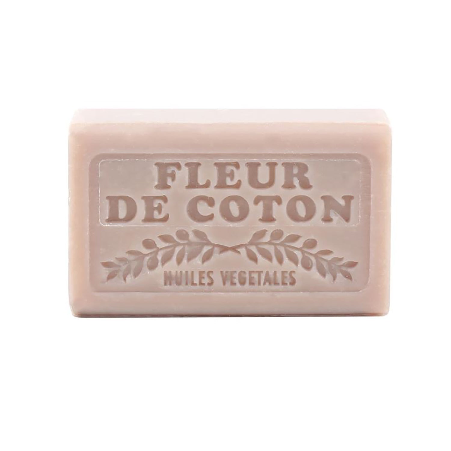 Our stunning soap is made to a traditional ‘Marseilles’ recipe using Shea Butter, Palm Oil and Natural Essences. Here it is in the very popular Cotton Milk fragrance.