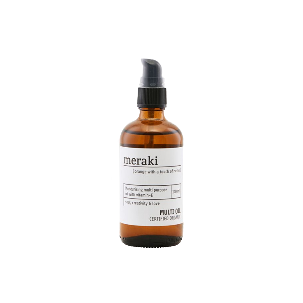 The Meraki Pure Oil is 100% organic with a gentle scent of Orange & Geranium. It consists of e.g., argan oil, that is famous for its high levels of antioxidants and Omega fatty acids. Argan oil contains up to five times as much Vitamin E as other oils. Use this multi-purpose oil as a hair treatment or body oil, for removing makeup, for shaving (use on wet skin), for dry hair and skin and as thermal protection of your hair before blowdrying. If an extra moisturizing effect is desired, mix in a few drops with your hair shampoo or body lotion. Suitable for all skin types. Store at room temperature. Does not contain: Silicone.