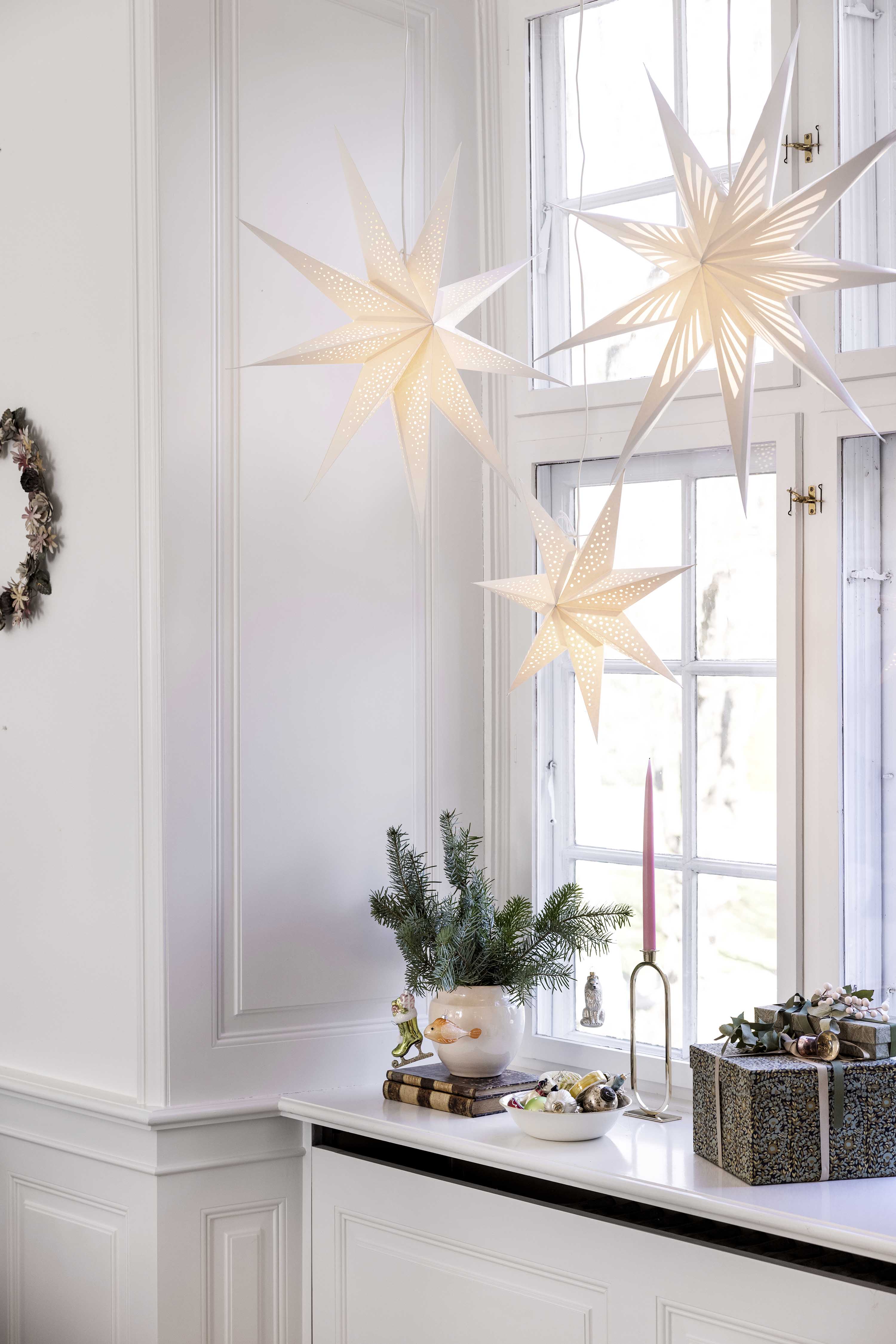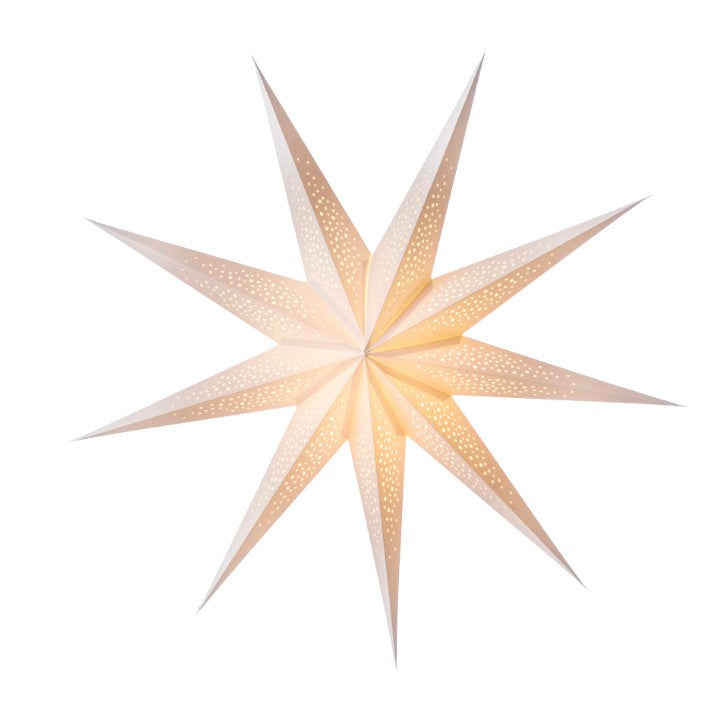 Measuring 80 cm, this 9 pointed star decoration is a dramatic yet elegant addition to your room décor. The star can be folded and stored, to be used again and again every year.