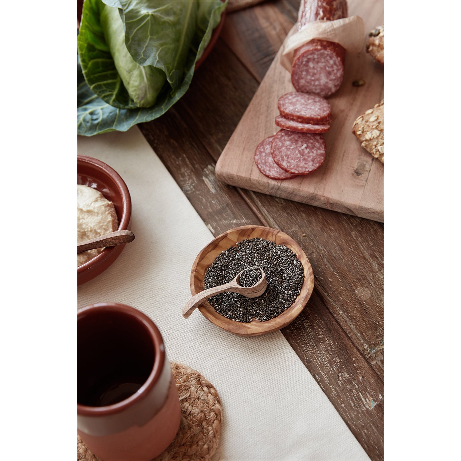 This mini wooden spoon is perfect for serving salt. Made from Acacia wood, the spoon has a lovely natural natural wood grain.