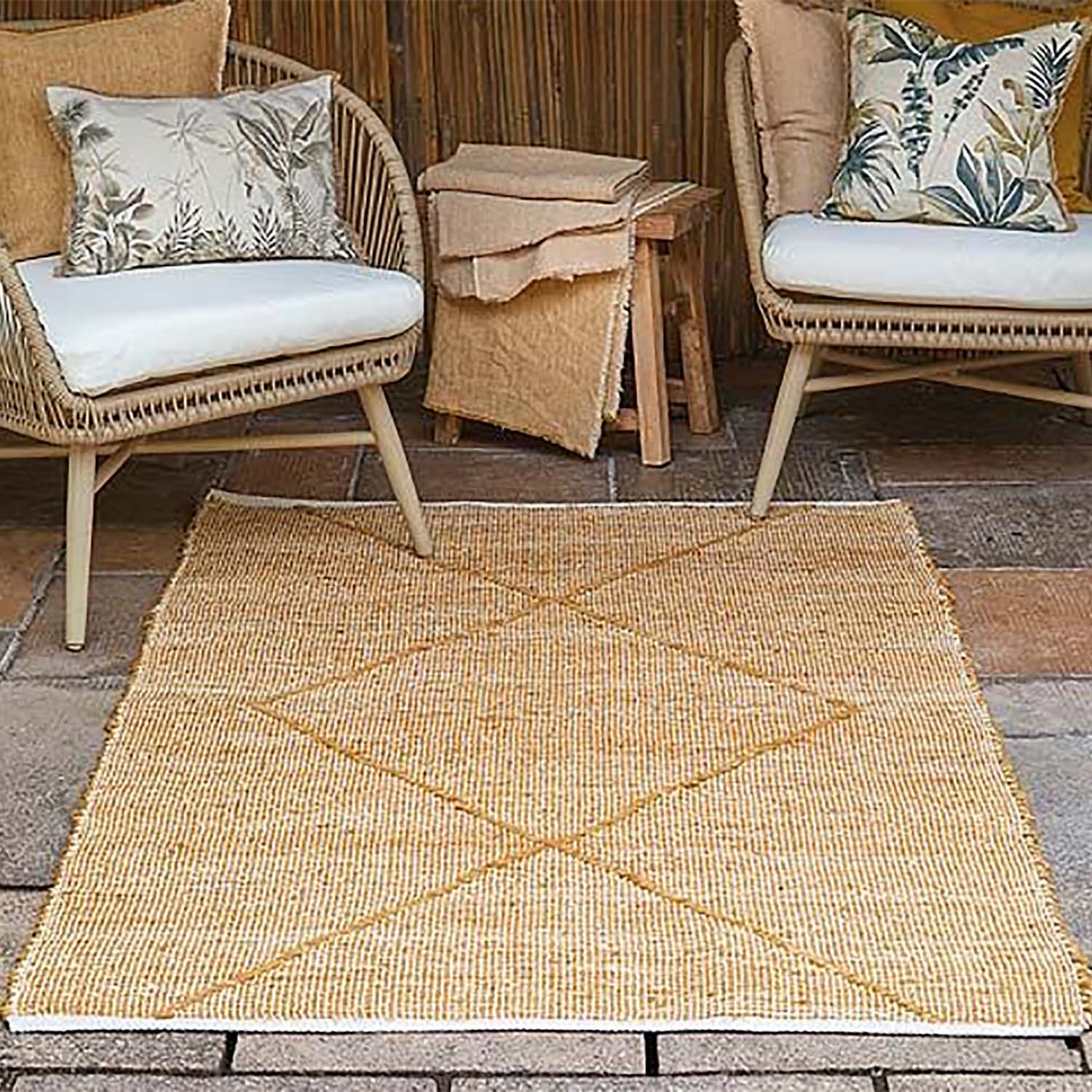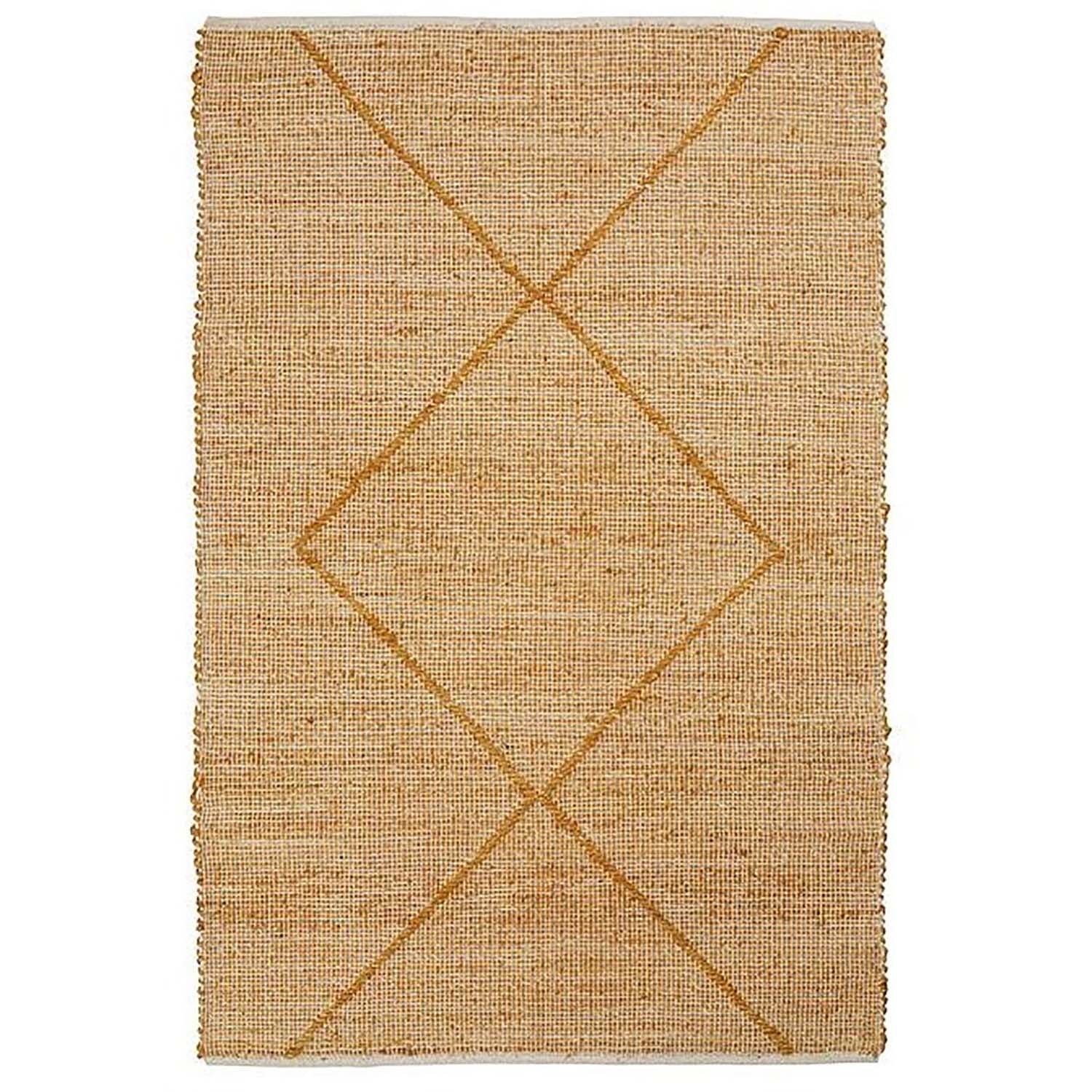 A woven jute rug with a geometric diamond design. The enduring appeal of this natural material gives this rug a timeless quality, while the durability of jute makes it a lasting item from a practical point of view too!