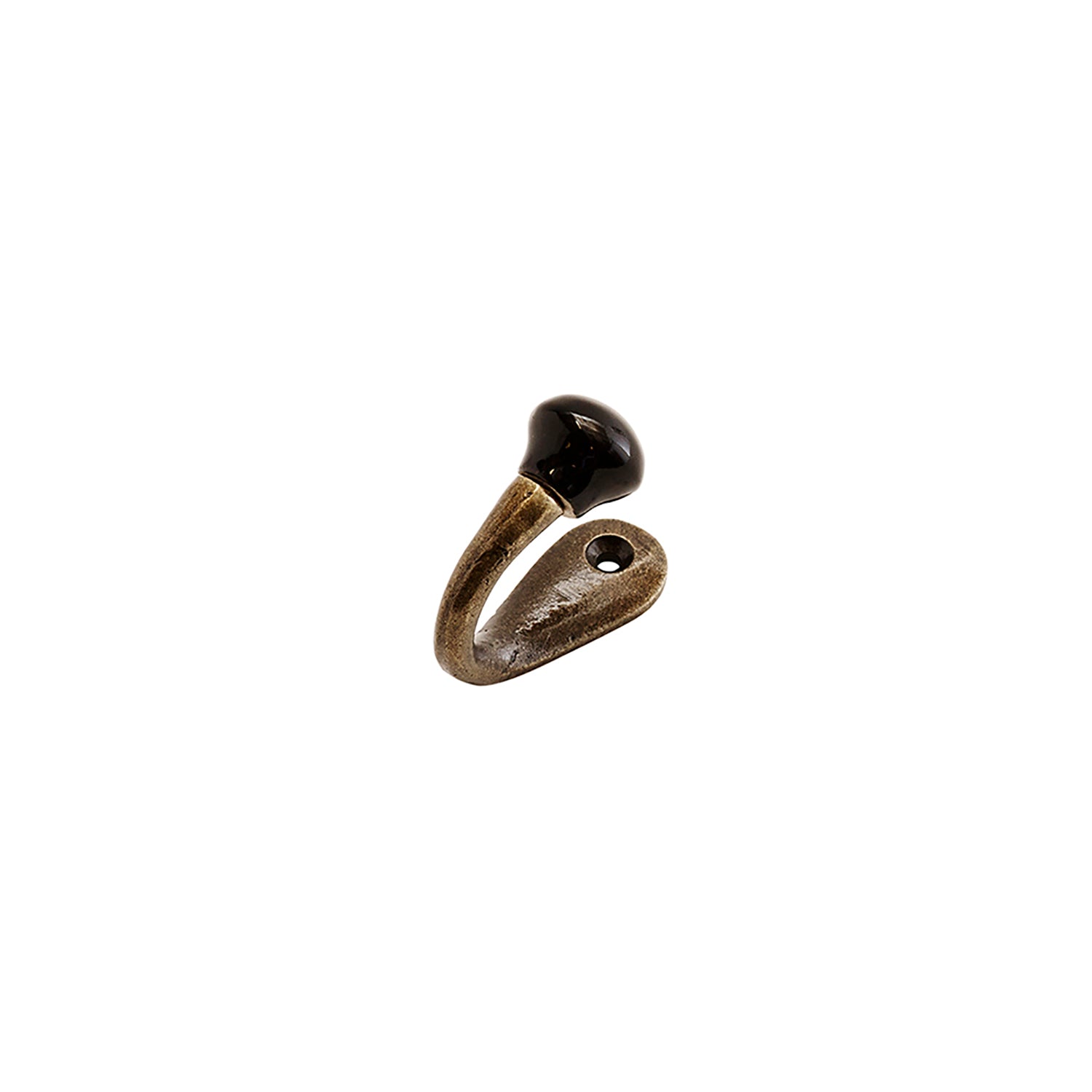Antique Brass and Black Stoneware Iron Hook, 5cm