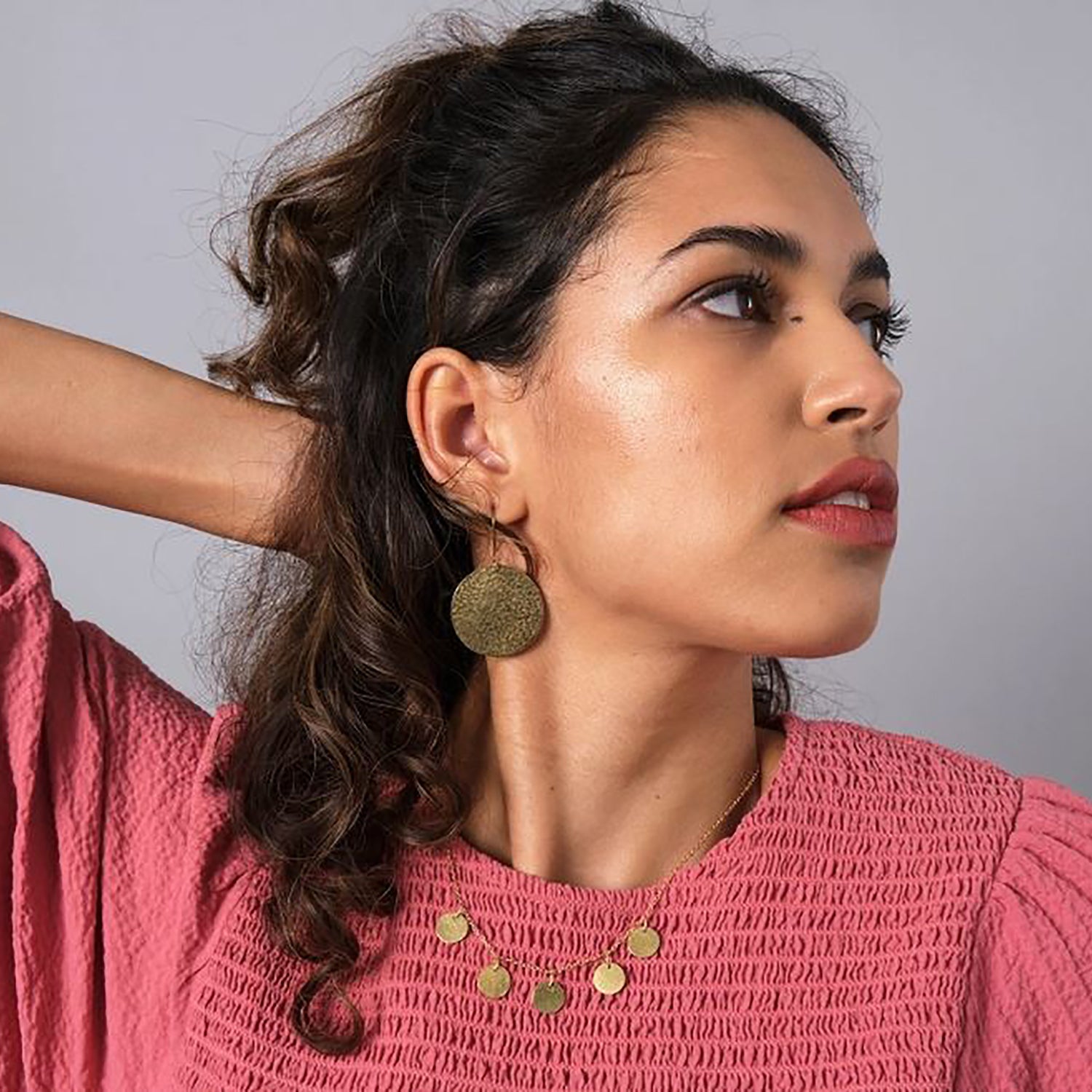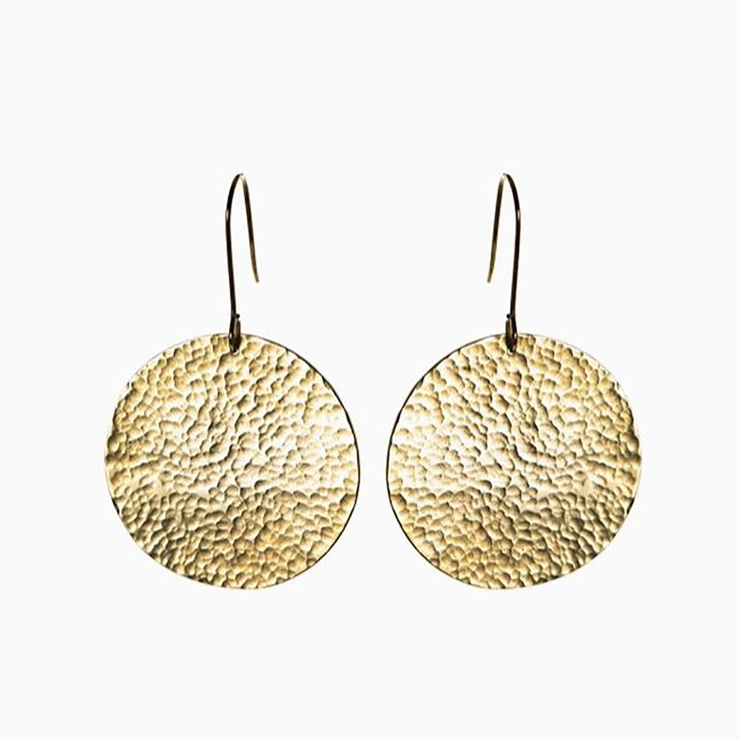 Hand cut from brass sheet and finished using a specialist hammer to give it texture, these earrings are made from brass with hypoallergenic brass earring hooks.