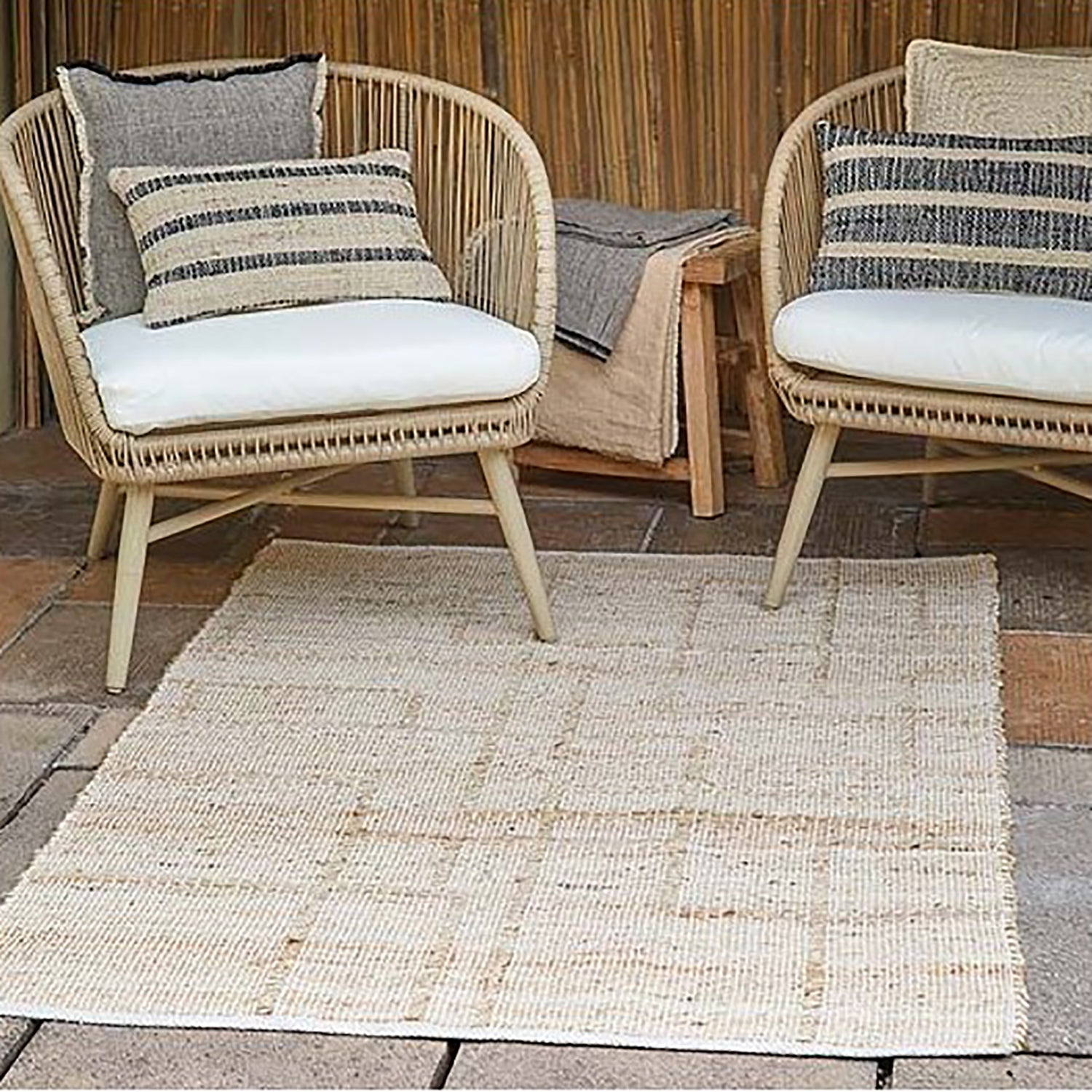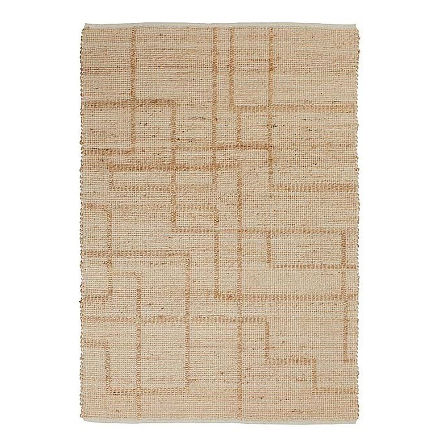 A large woven Jute rug with a subtle geometric design which give it a contemporary flare.
