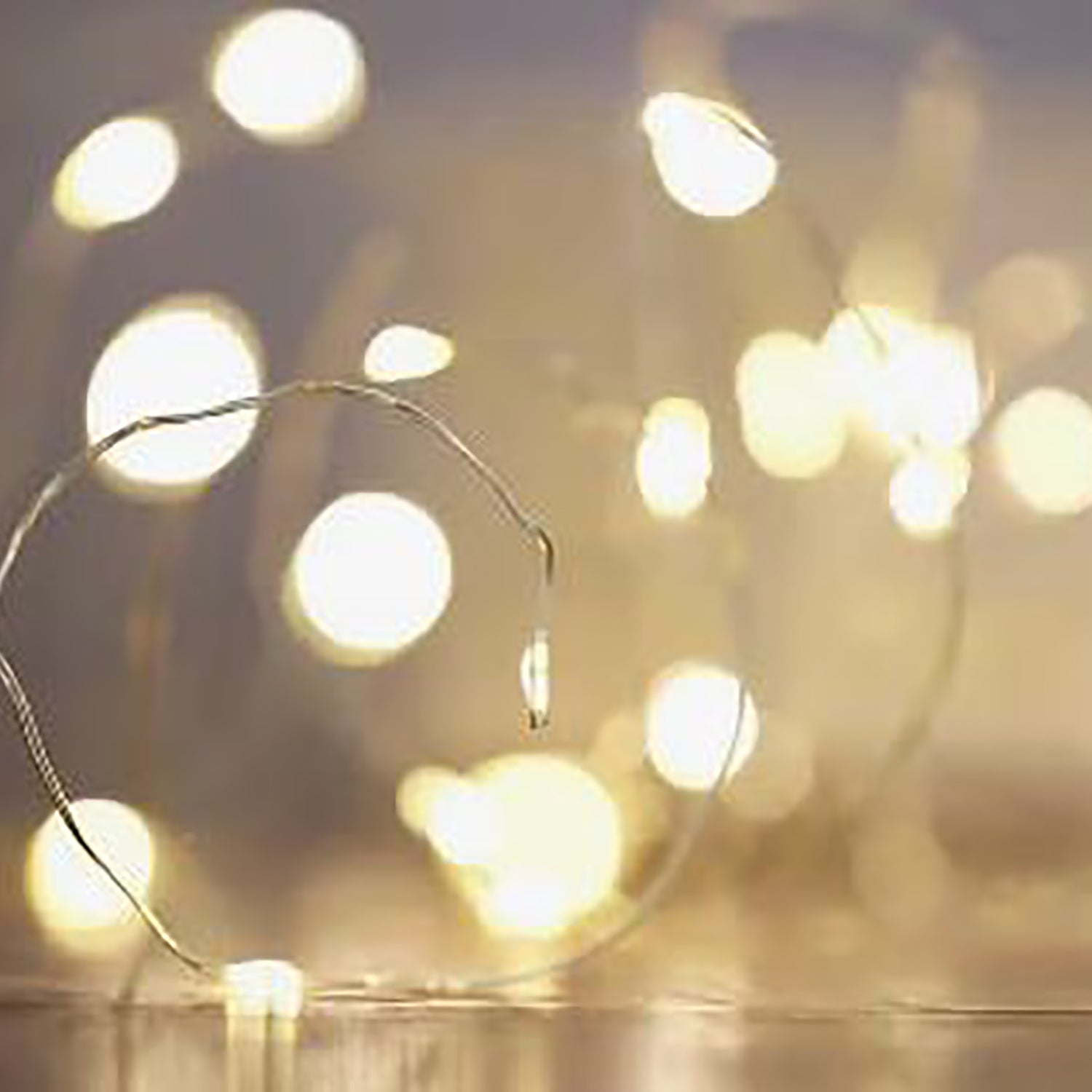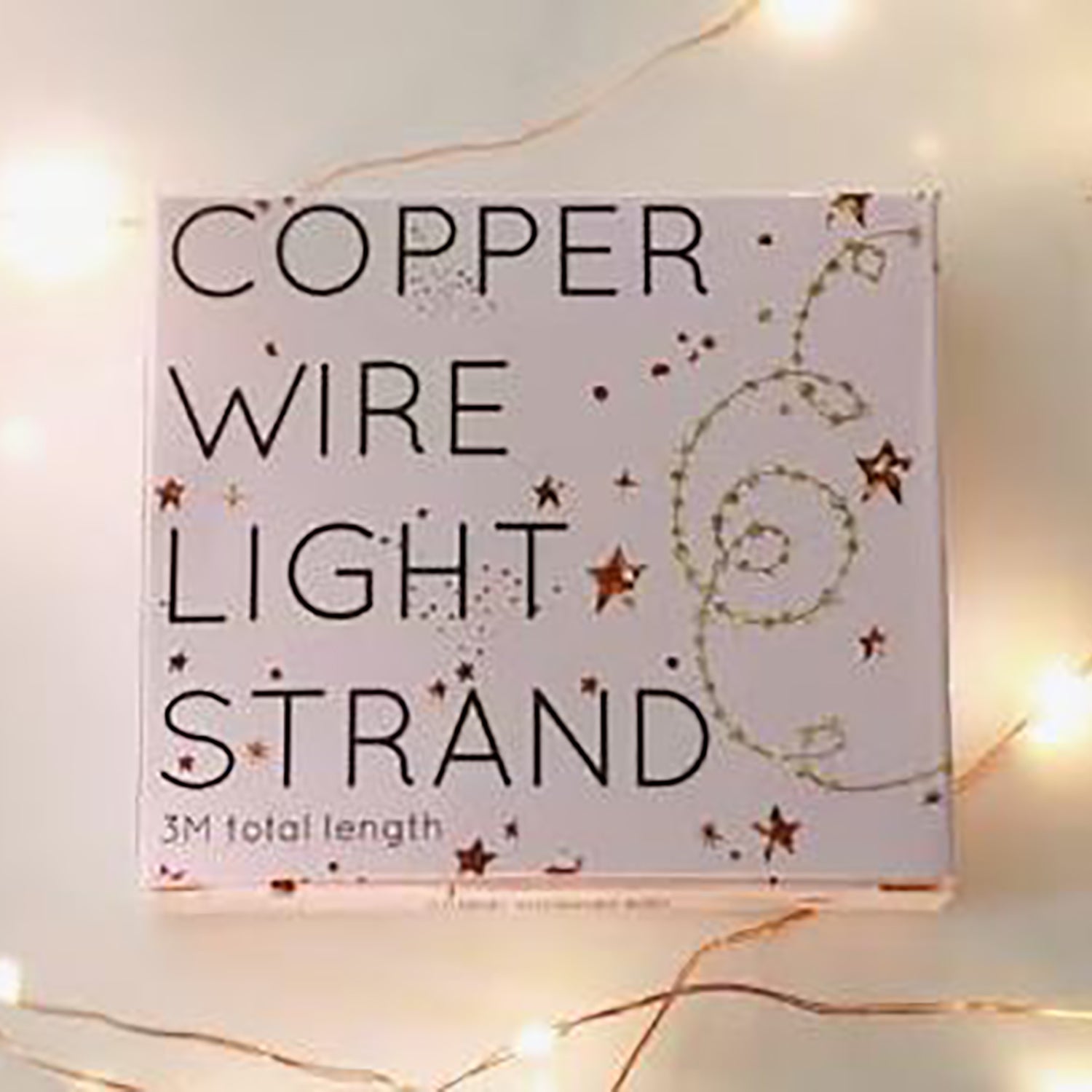 A sparkling light strand for adding some twinkle to your home. Delicate wire strand lighting with 30 small LED lights. Lights spread across a 3 metre long wire.