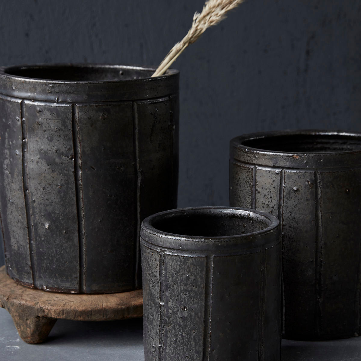 Black Glazed Ceramic 'Julian' Planter, 20 x 18 cm