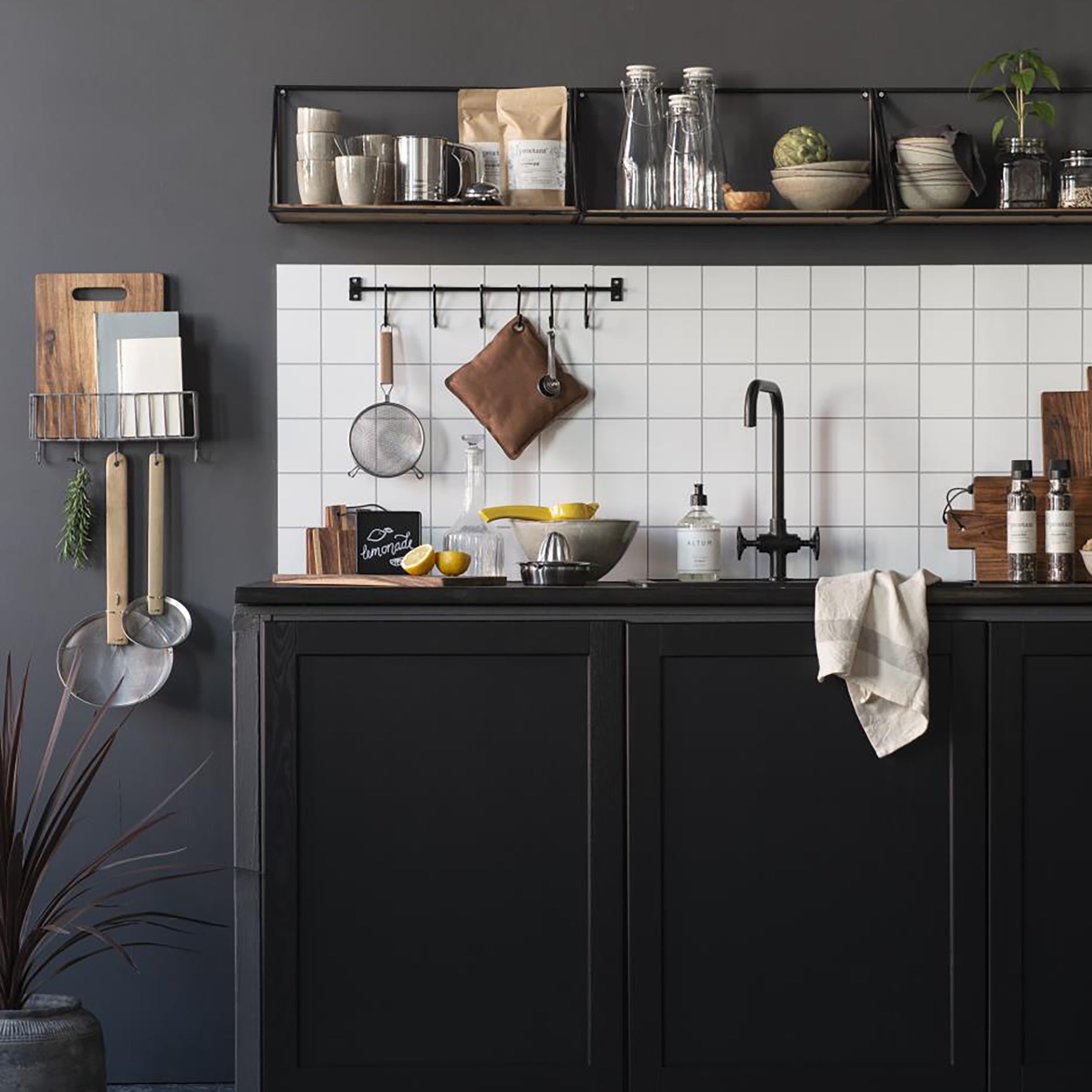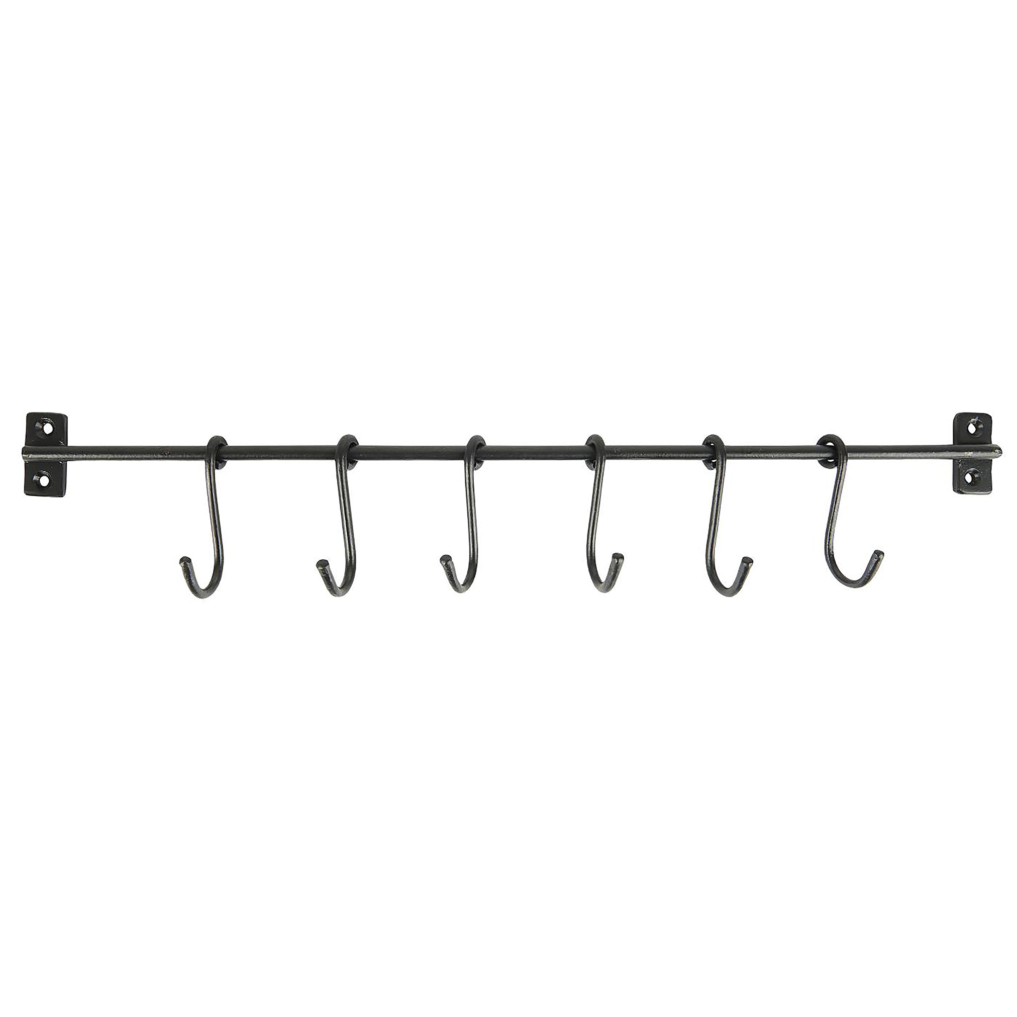 Ideal for kitchen storage, this black metal hook rail comes with 6 S hooks which to hang kitchen accessories and utensils from.