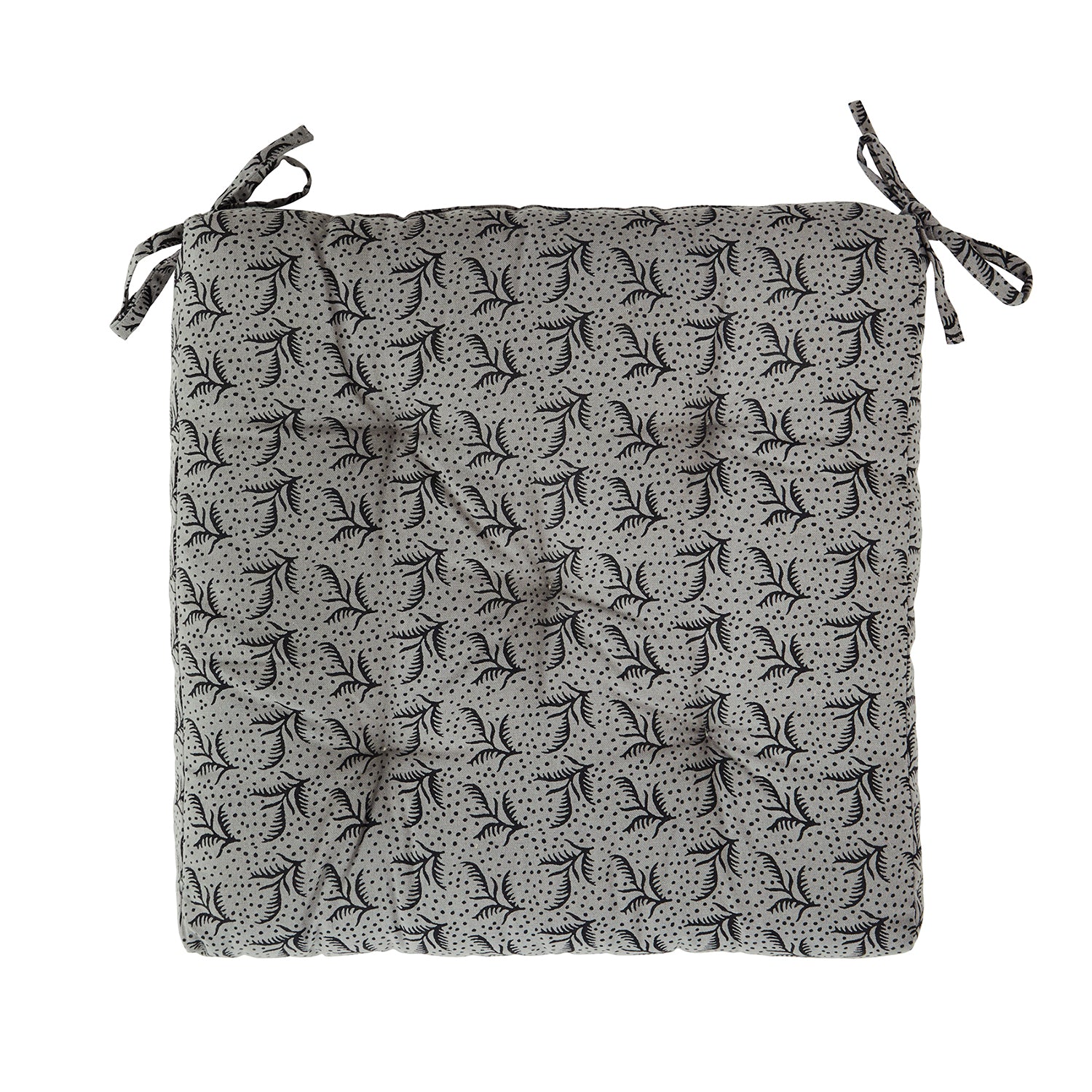 Grey & Charcoal Floral Block Print Cotton Chair Pad