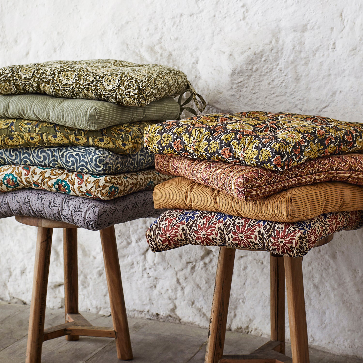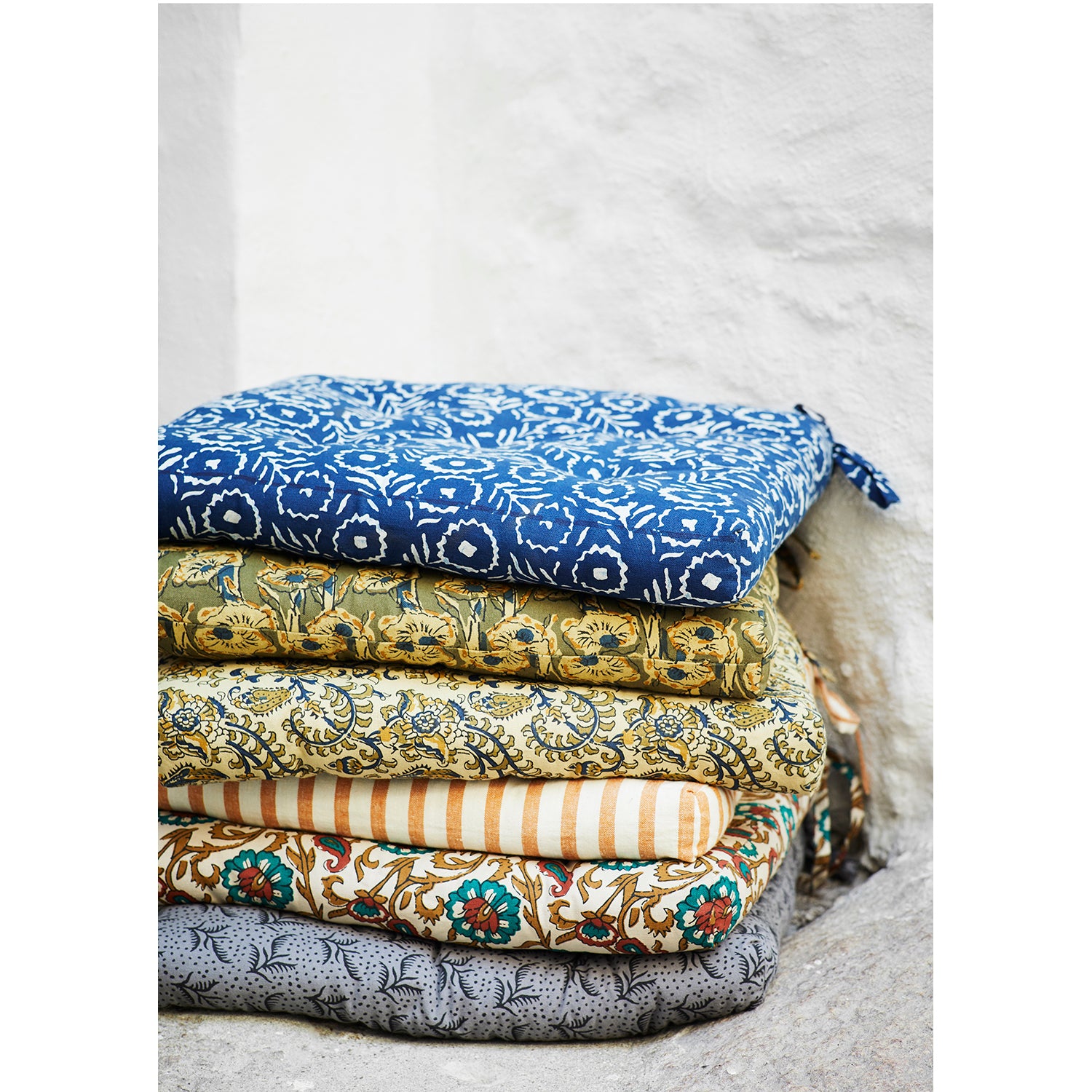 Add a touch of bohemian style to your seating with this stunning floral block print chair cushion from Madam Stoltz. The pad comes with two ties to attach it to the chair.