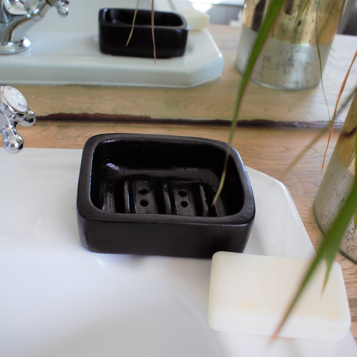 A soap dish handmade from terracotta, high fired underground the traditional way to give it a black colour. Pair with our beautiful soaps, they make the perfect match!
