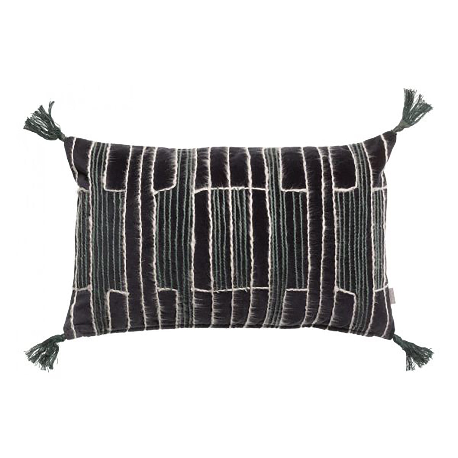 Black & White 'Cristo' Embroidered Cotton Velvet Cushion, 30 x 50 cm