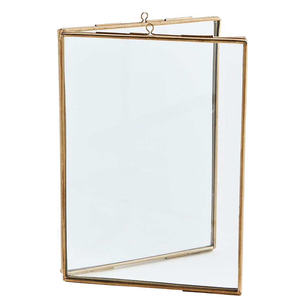 This stylish Brass Photo Frame from Madam Stoltz has two compartments for displaying photos or keepsakes. Freestanding, this frame looks great on a mantlepiece or shelf, paired with other frames and ornaments. The frame has a sliding lock on each panel to open and close the frame compartments.