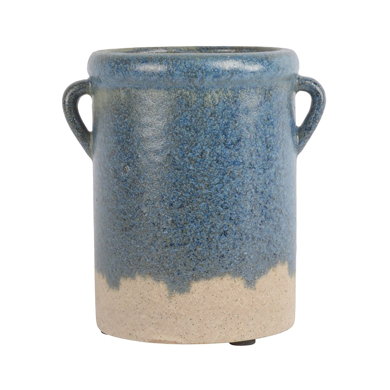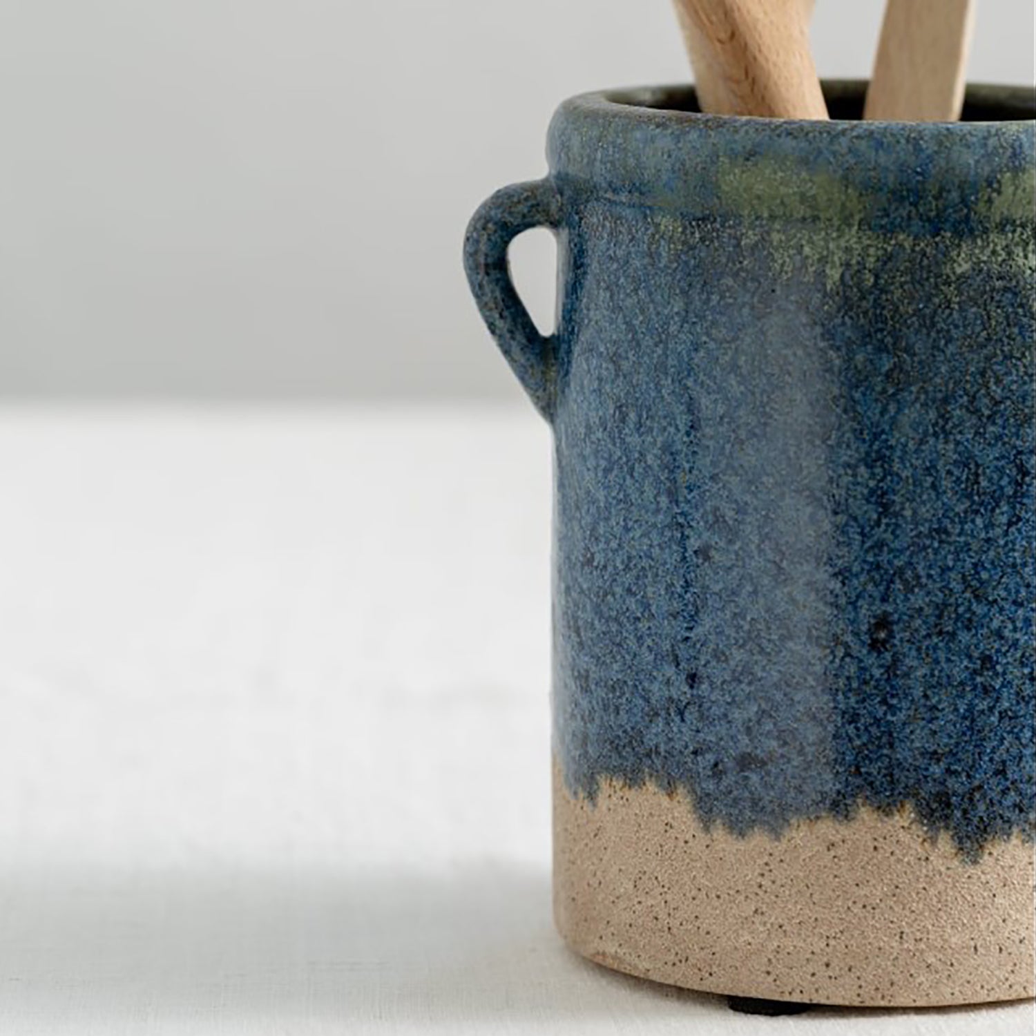 No matter where you choose to display this stylish ceramic blue dipped jar, it will add a subtle yet rustic touch to your living space. Perfect for holding utensils in the kitchen or even flowers around the home, the possibilities are endless. Plus with the addition of handles it makes it much easier to transport from room to room. A charming piece filled with a lot of character.