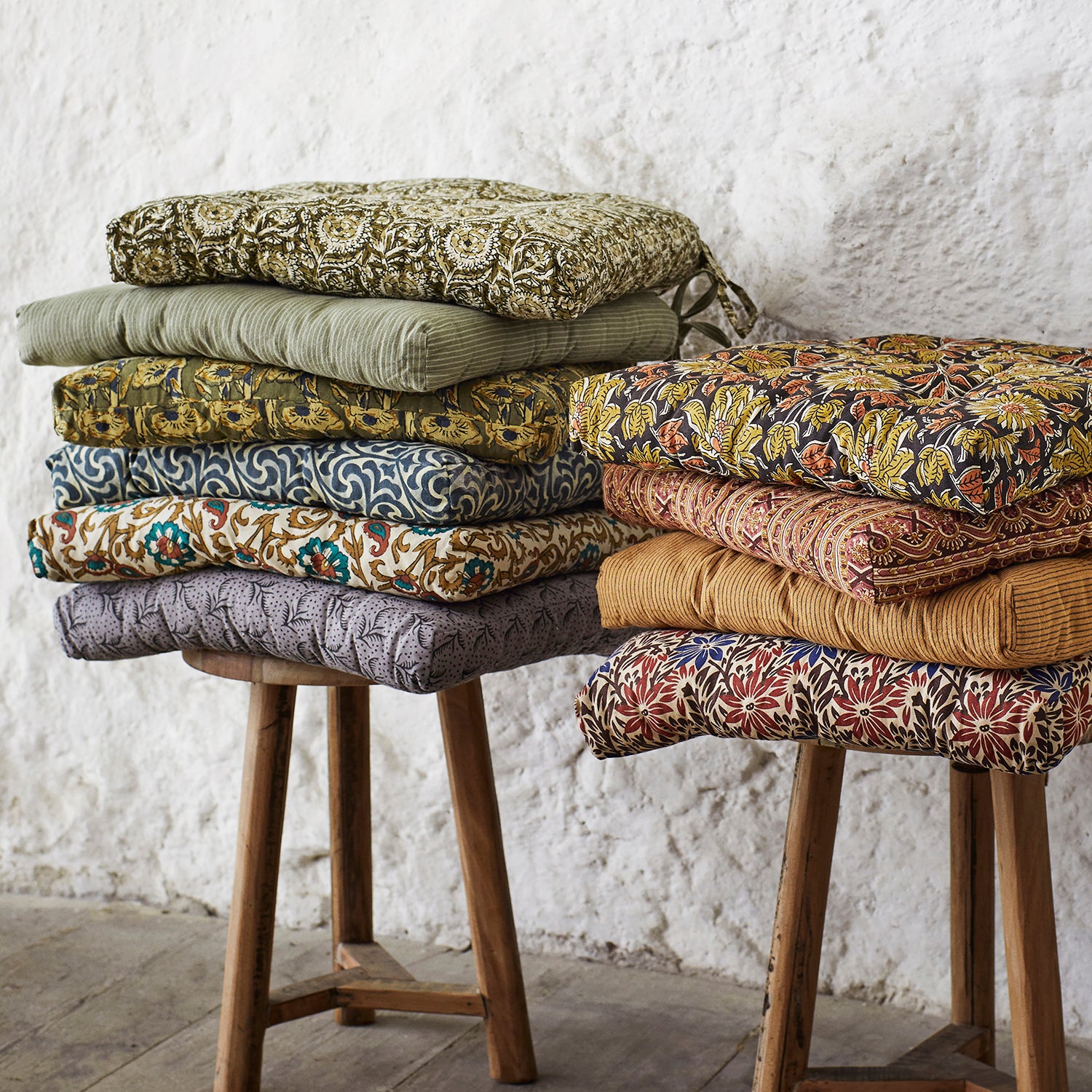 Add a touch of bohemian style to your seating with this stunning floral block print chair cushion from Madam Stoltz. The pad comes with two ties to attach it to the chair.