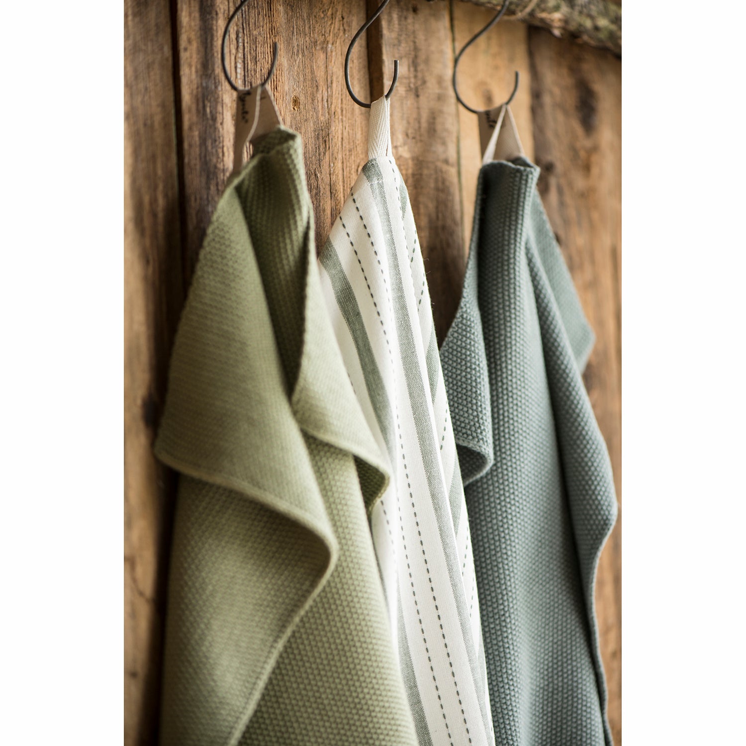 This knitted cotton hand towel from Ib Laursen's Mynte collection comes in Moss Green It features a lovely textured and soft feel. Ideal for both kitchen and bathroom use.