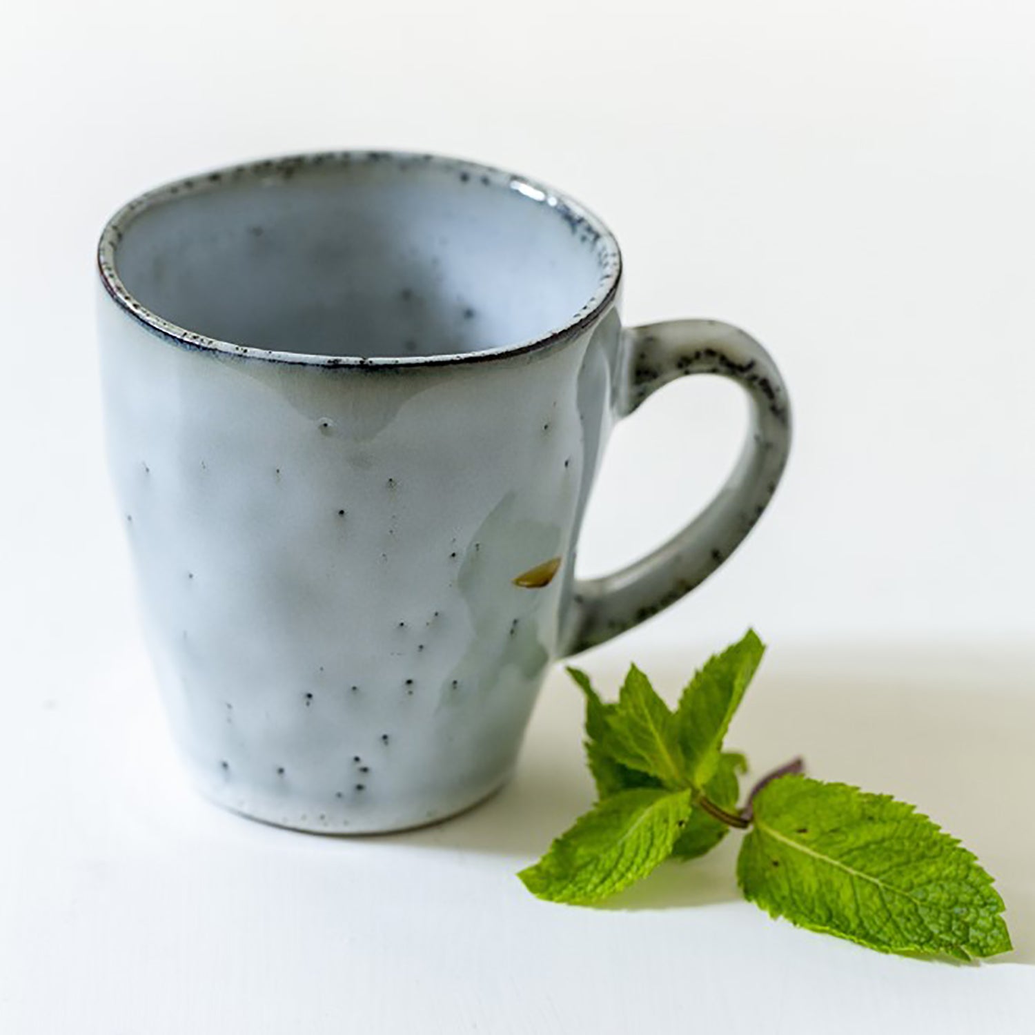 A chic addition to your kitchen, the Frosty Grey Ceramic Mug from Grand Illusions is the perfect way to start your morning, filled with a fresh cup of tea or coffee. This mug makes a lovely gift.