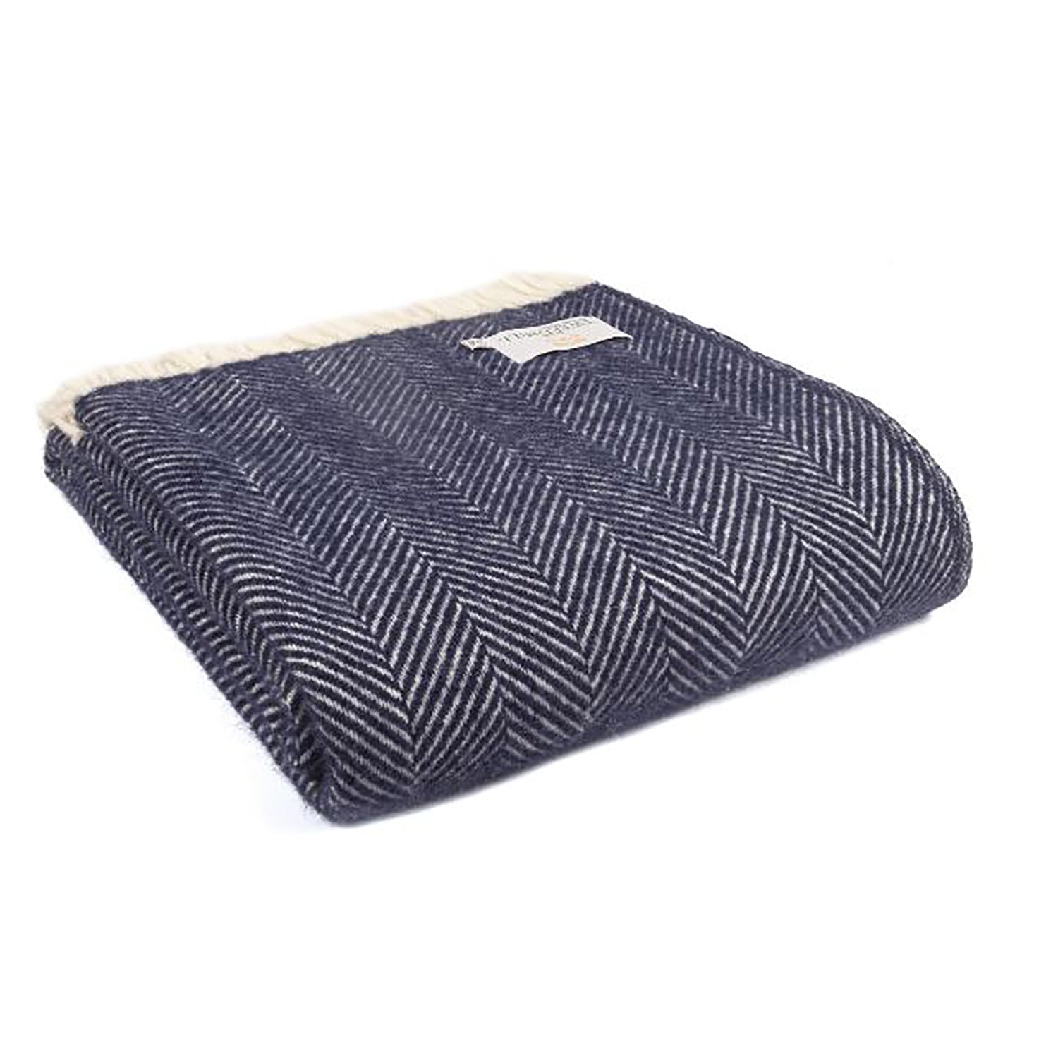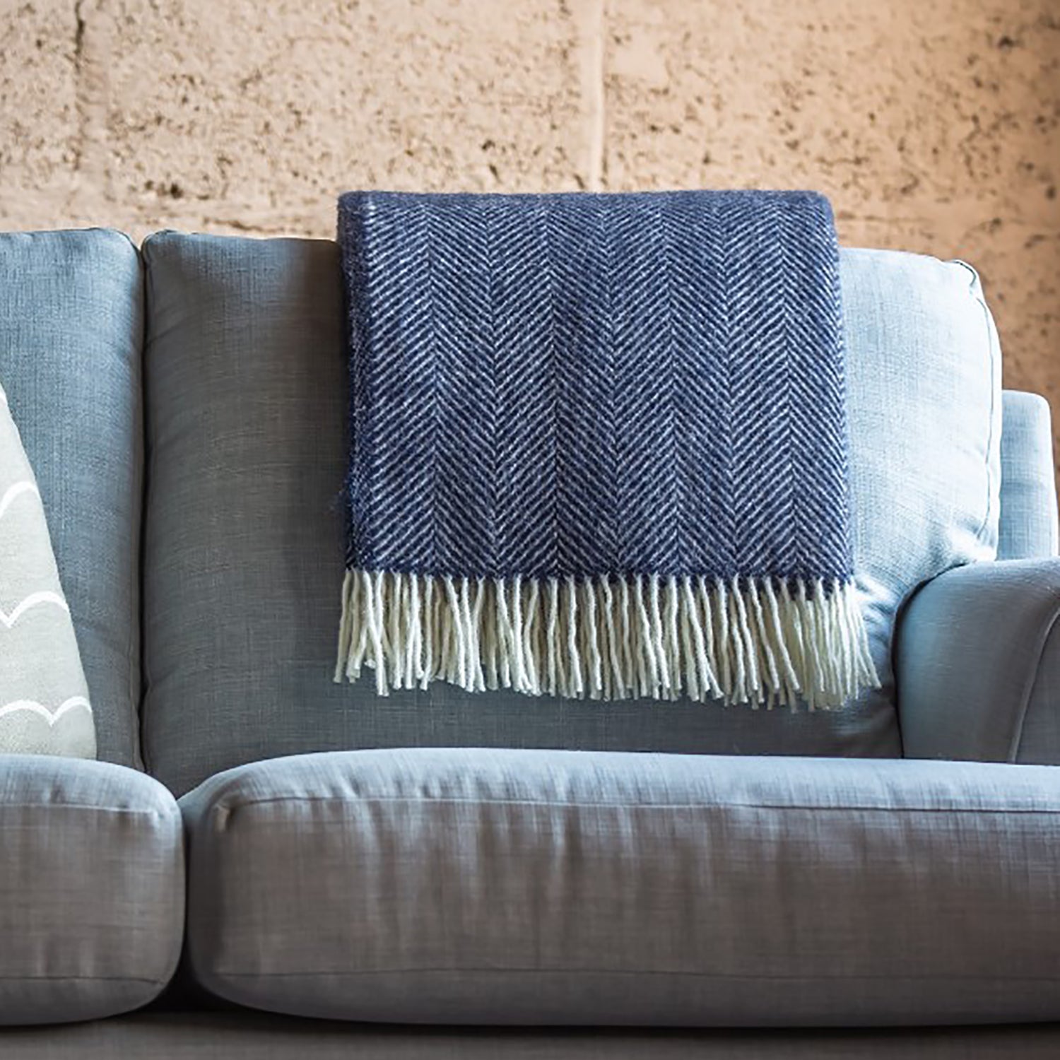 From Tweedmill, a truly warm and incredibly cosy Navy herringbone weave throw. Perfect on the sofa or at the end of a bed. These gorgeous throws are made in the UK from 100% wool.