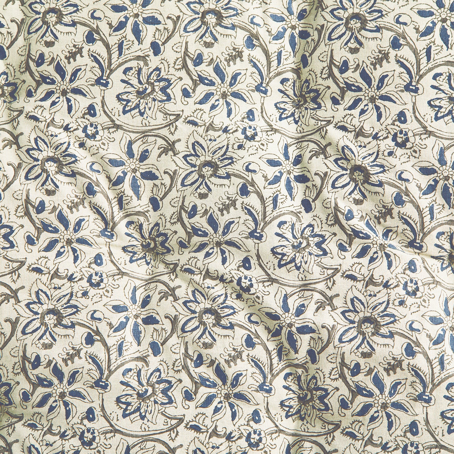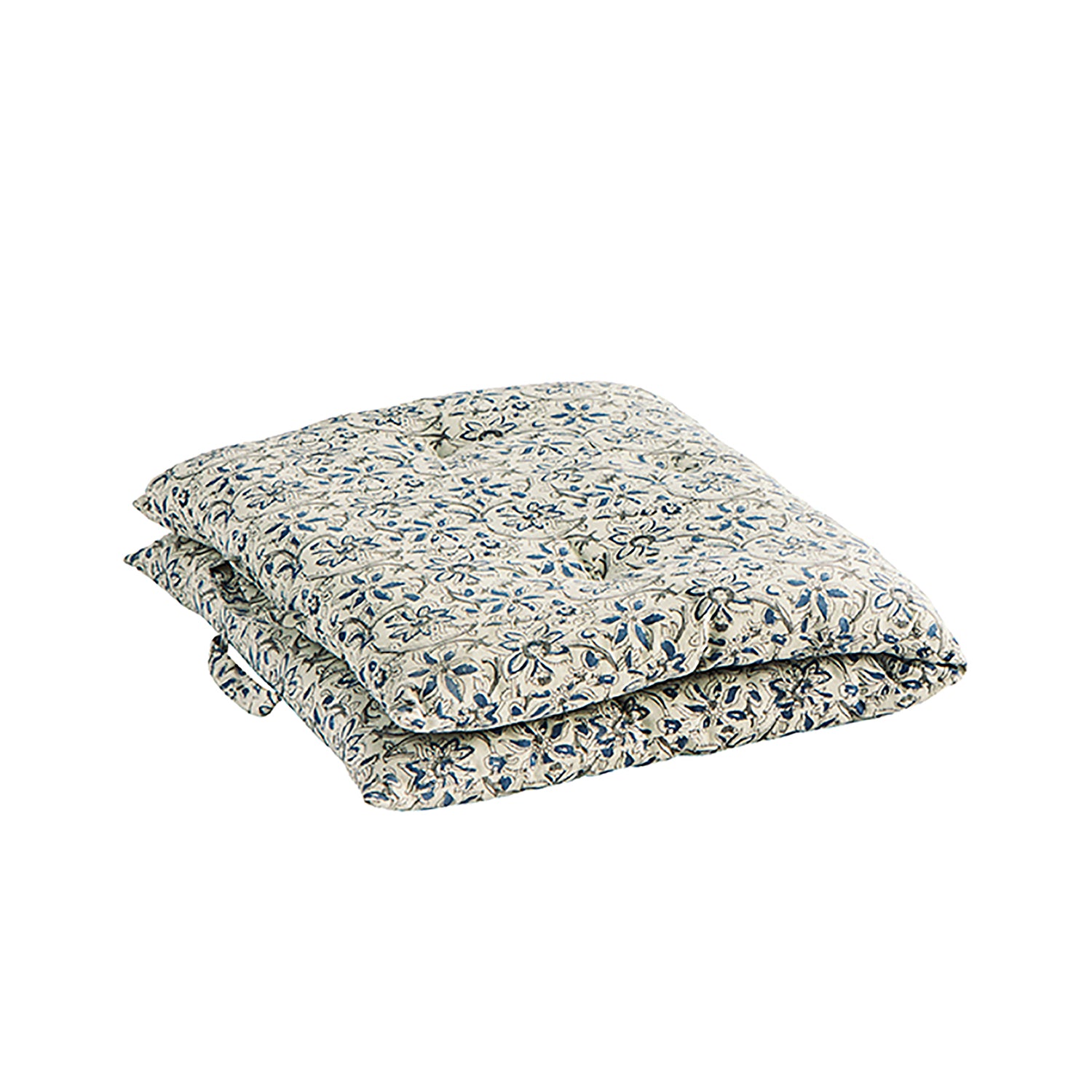 Off White, Blue & Grey Floral Block Print Cotton Mattress, 60 x 100 cm