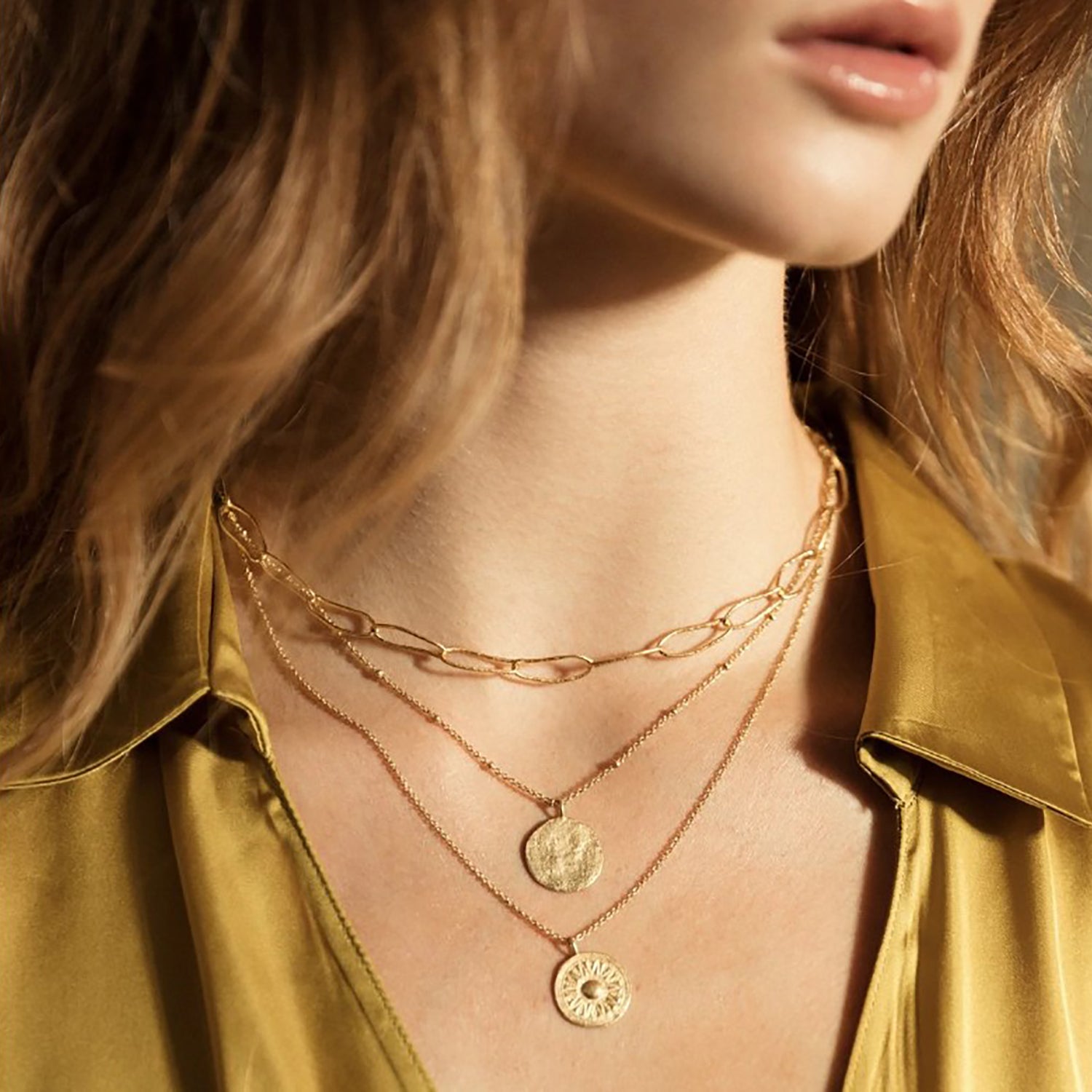 - 24K sustainable gold plated pendant and chain (gilding : satin)