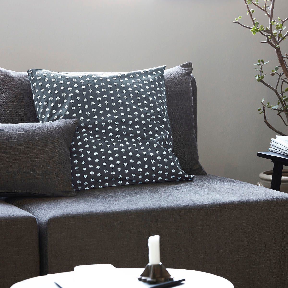 Nero from House Doctor is ideal for refreshing your home décor. The cotton material of this cushion cover has been given a timeless grey colour with a white, floral pattern for a feminine touch. Grey is a versatile colour that you can mix with just about any colour to create a personal look in your living room. Make the pattern of Nero stand out in your sofa among solid-coloured cushions in the same colour or mix it with a variety of patterns for a sofa arrangement with an inviting and relaxed look.