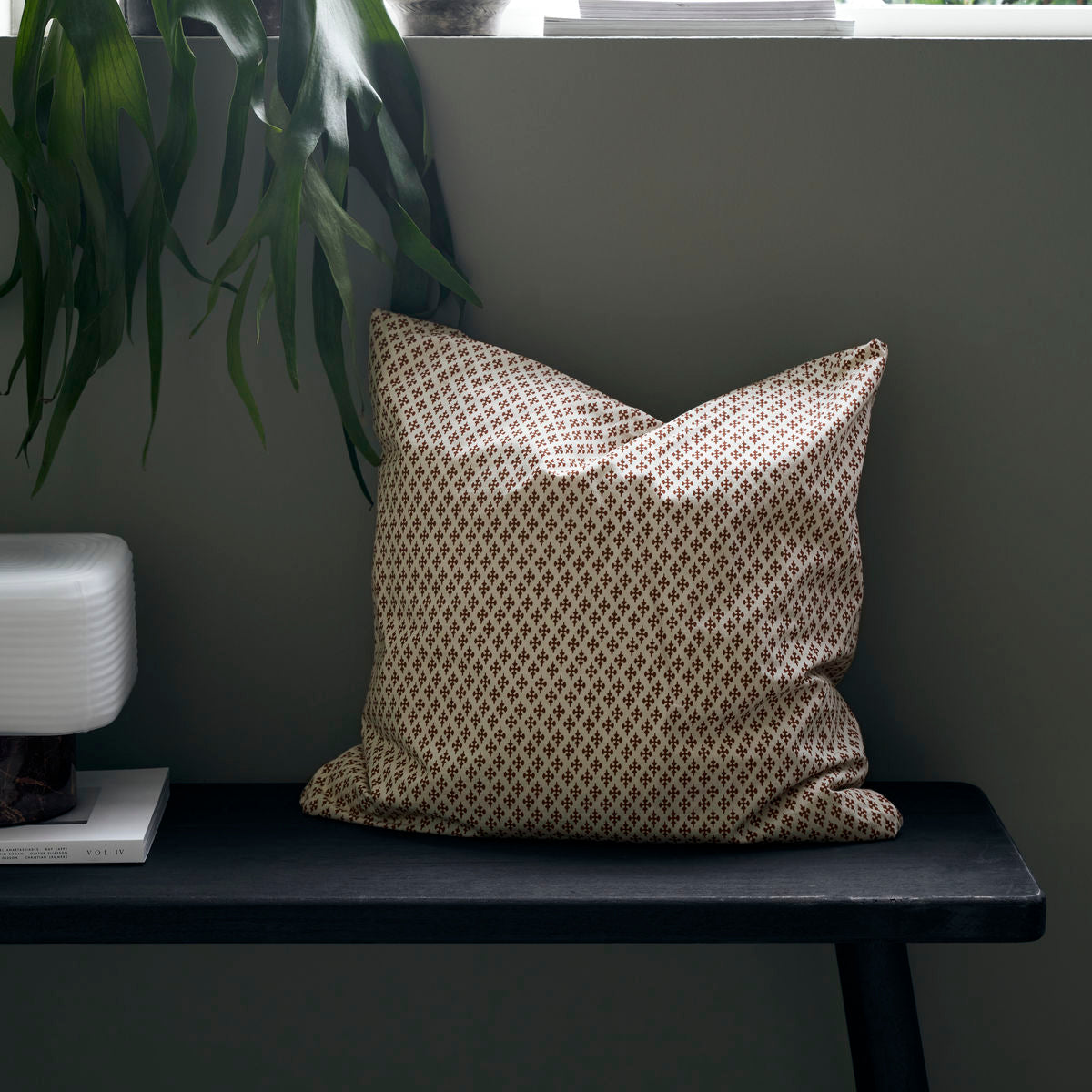 Refreshing your living room décor is easily done by adding a new pattern or colour. With the square Nero cushion cover, your sofa or armchair is updated with a relaxed design. House Doctor has designed the cushion cover in cotton with a handmade block print on a beige background. A casual and warm colour combination for a home décor in a light or neutral colour scheme. Use Nero in your sofa as the stand-out detail among plain cushion covers or mix with a variety of patterns for a fresh and personal touch. It is an instant makeover to your living room.