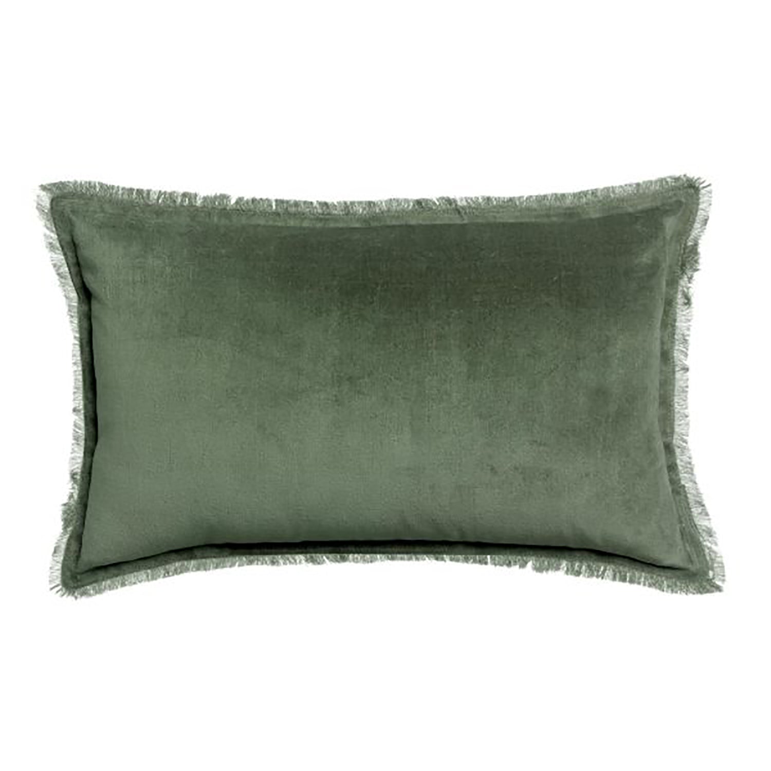 Thyme Green Fringed Velvet 'Fara' Cushion, 30 x 50 cm