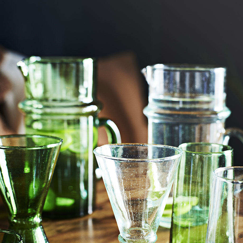 These beautiful Beldi Tumblers from Madam Stoltz are hand blown using recycled glass, with a lovely tint of blue/green. This hand made quality gives each glass a unique feel, reminiscent of the traditional Moroccan Beldi cups. Perfect for cool drinks on a warm day, a Moroccan mint tea or simply as a decorative item, these lovely tumblers will be a special item in any home.