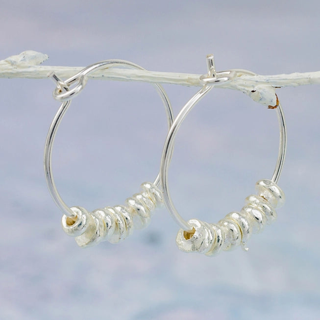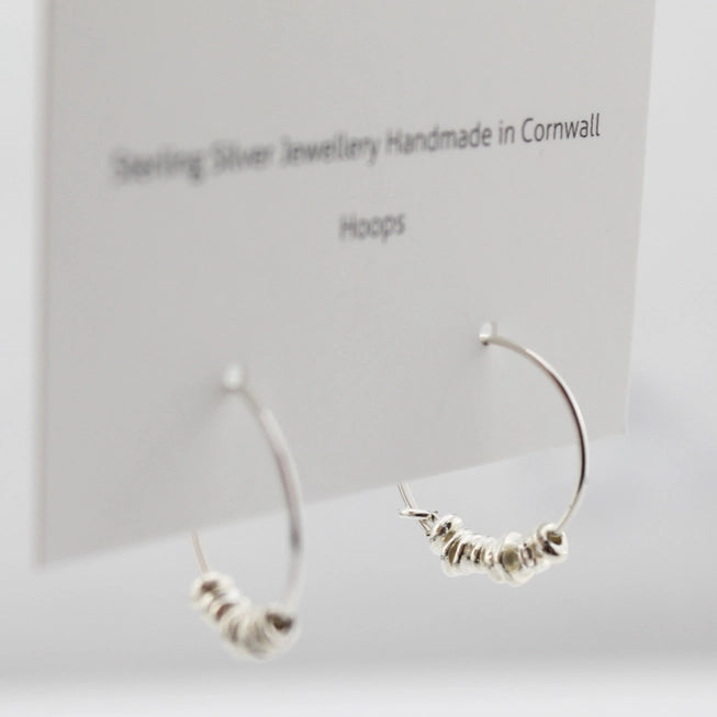 Handmade sterling silver Hoop with recycled sterling silver nuggets. Hoop size approximately 14- 15mm with 8 nuggets on each hoop.