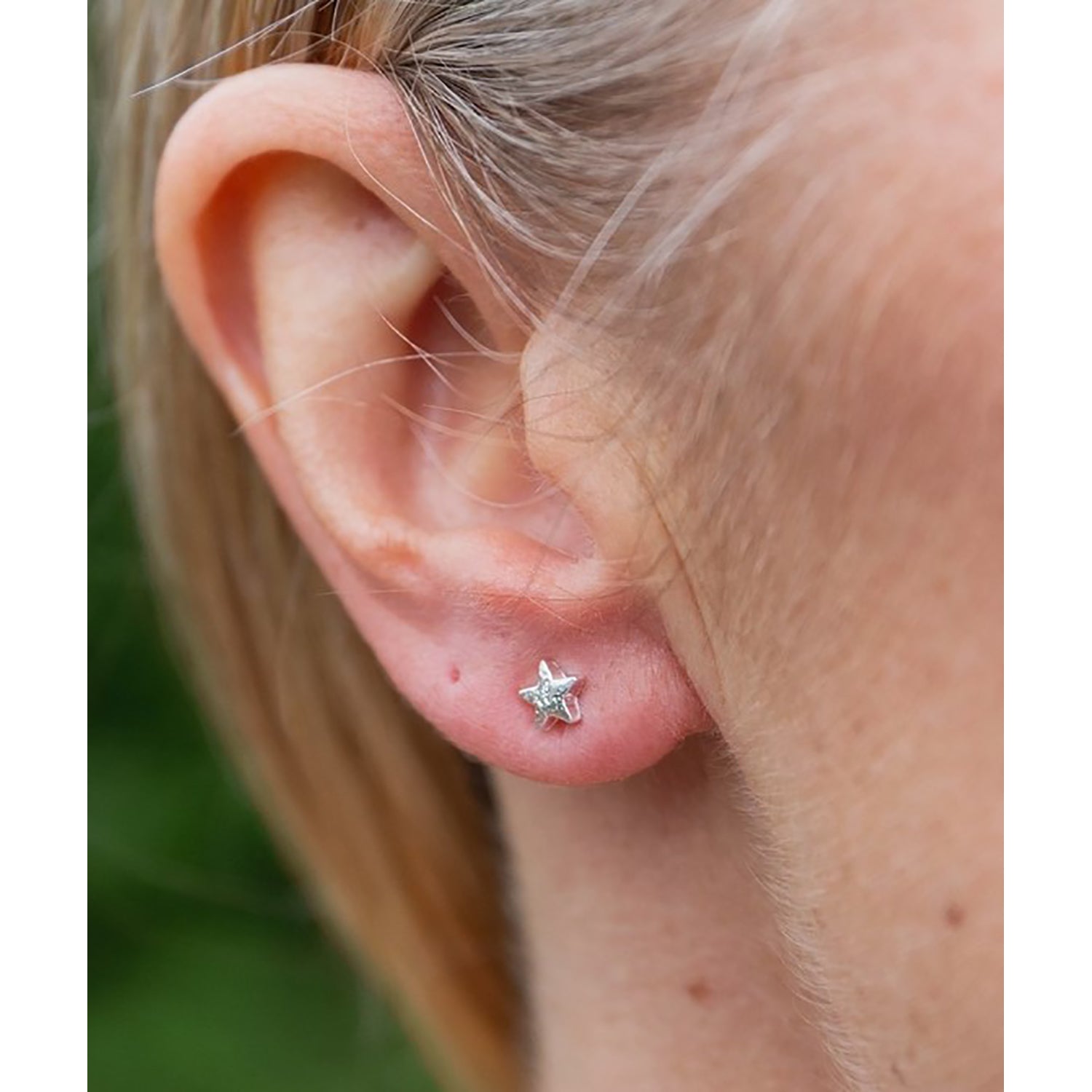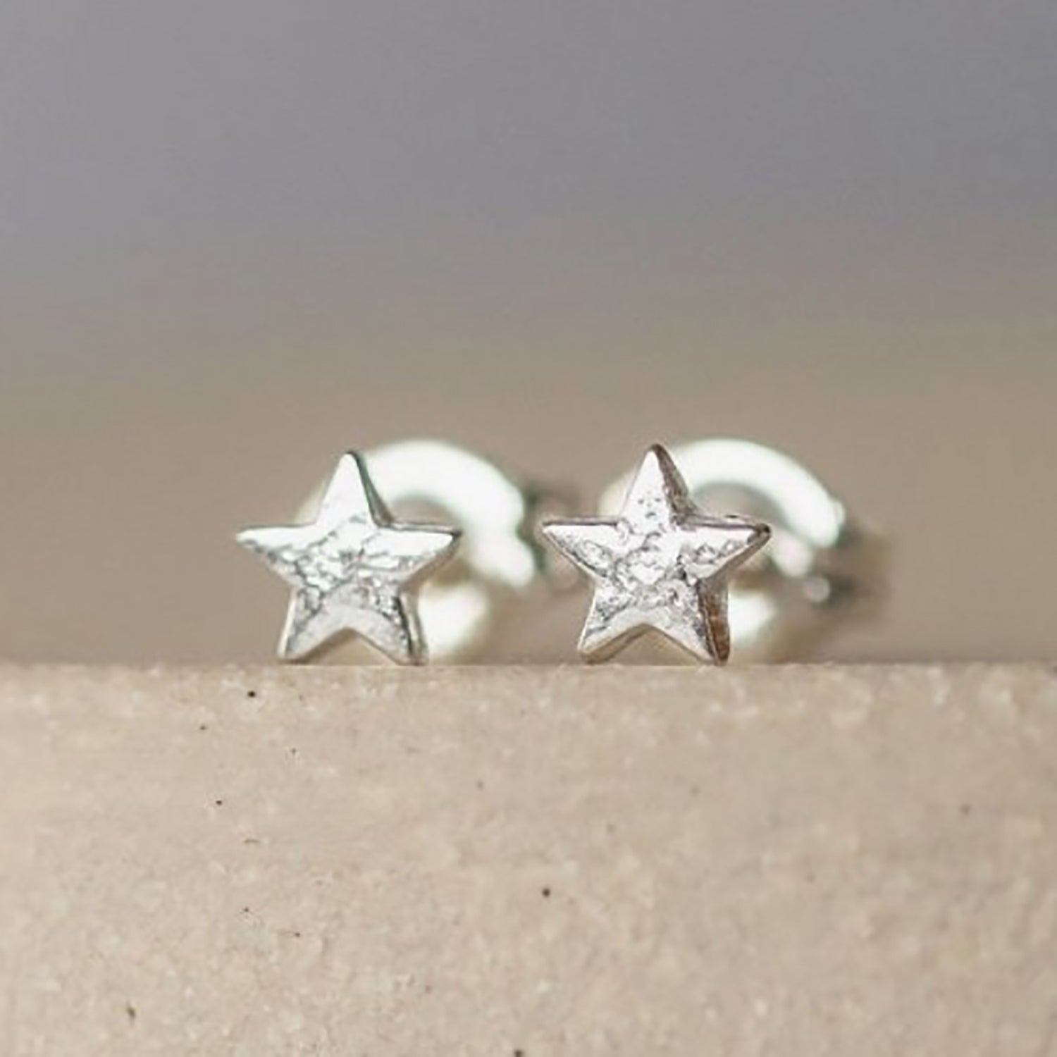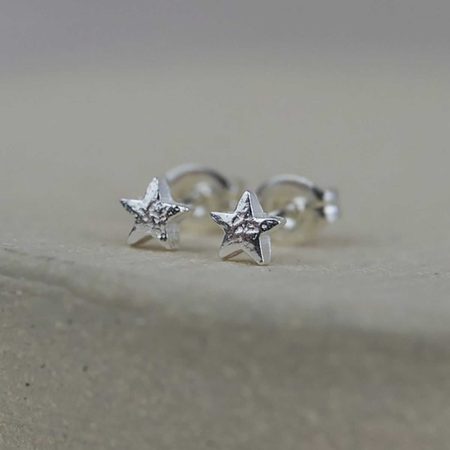 Handmade sterling silver mini star studs are hand cut and delicately textured and are perfect for everyday wear.