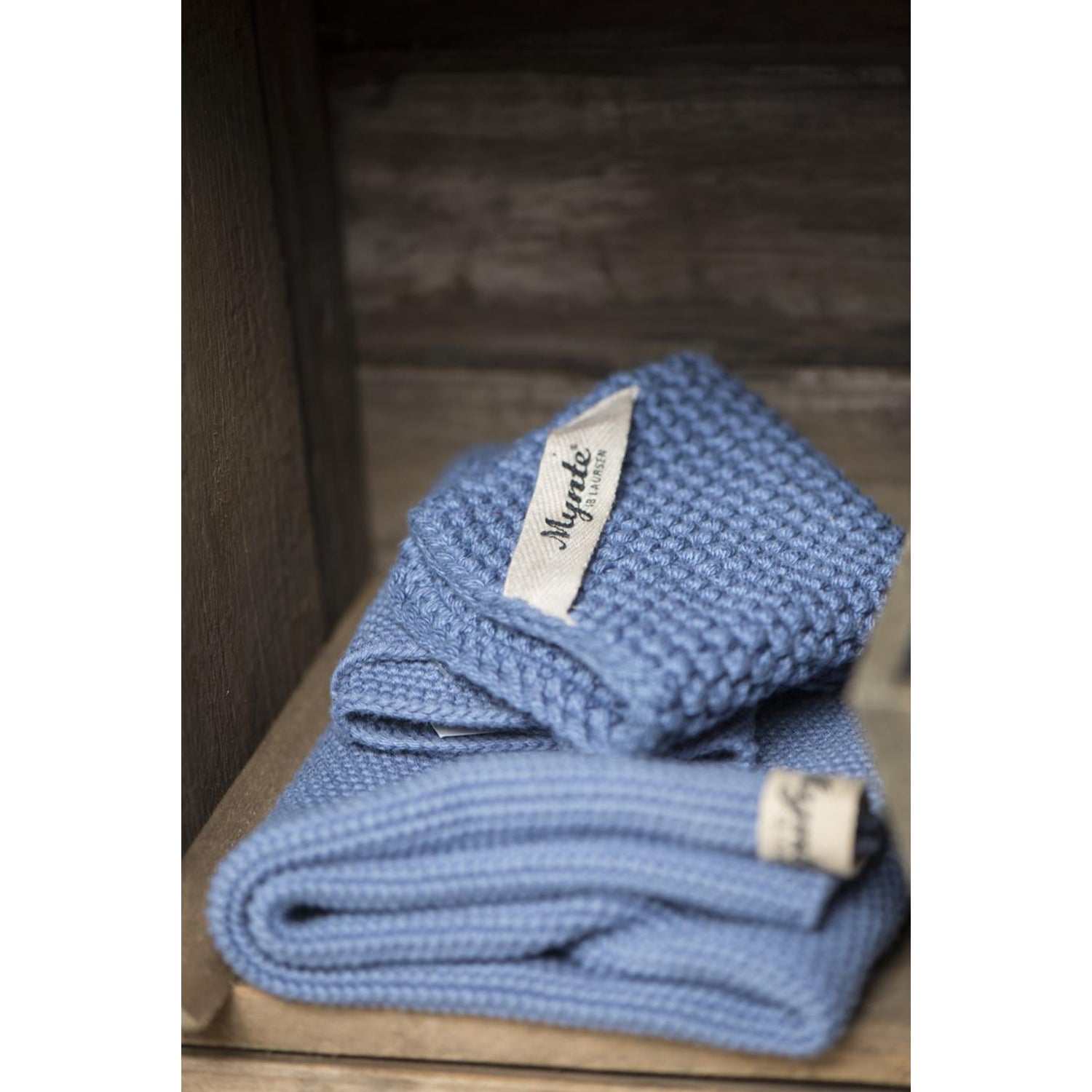 This knitted cotton towel from Ib Laursen is part of the brand's Mynte collection. Available in a calm cornflower blue colour, the towel features a lovely textured and soft feel. Useful in both kitchens and bathrooms. Reds, Greens, Blues & Natural colours are also available.
