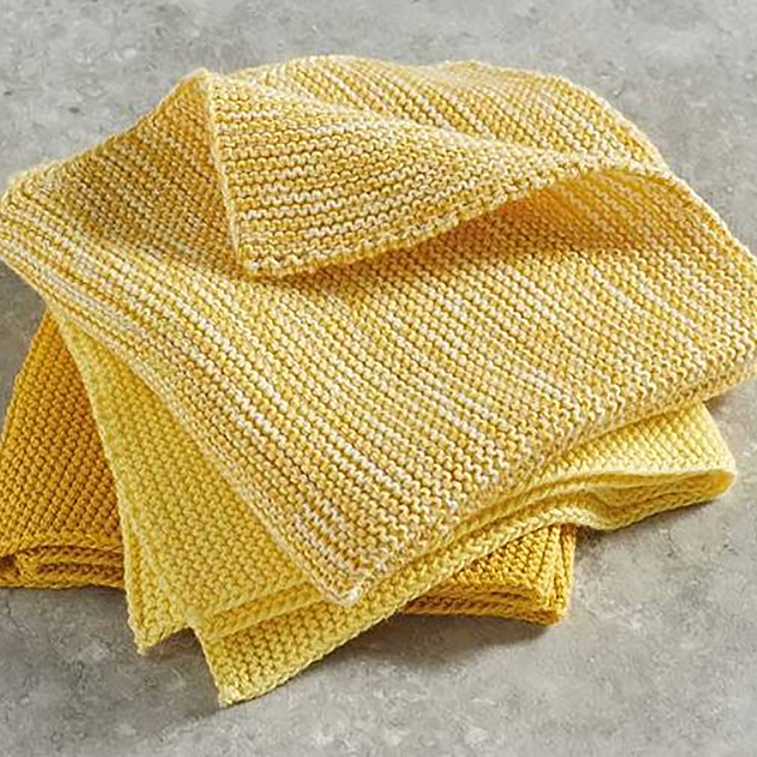 Set of 3 knitted cotton dishcloths in solid and melange tones, available in three colours.