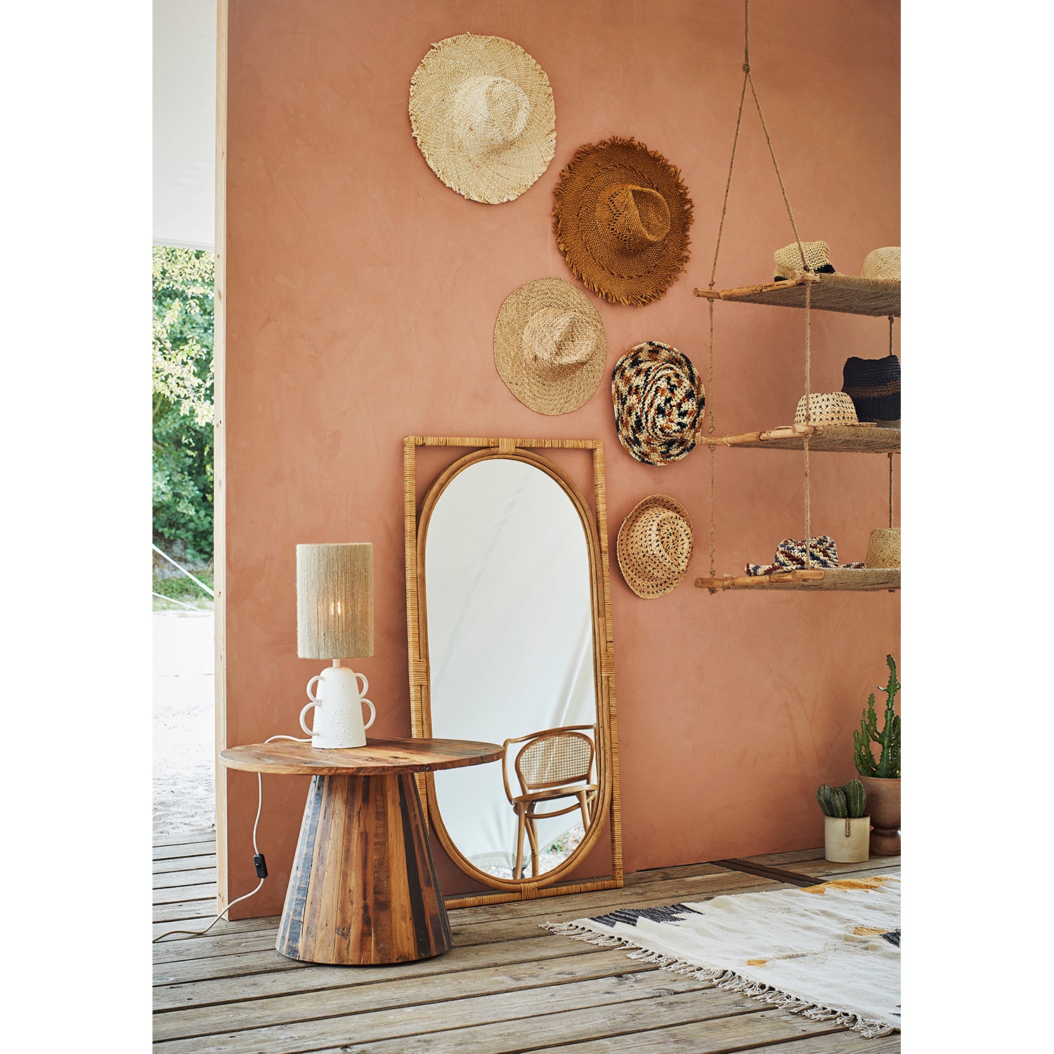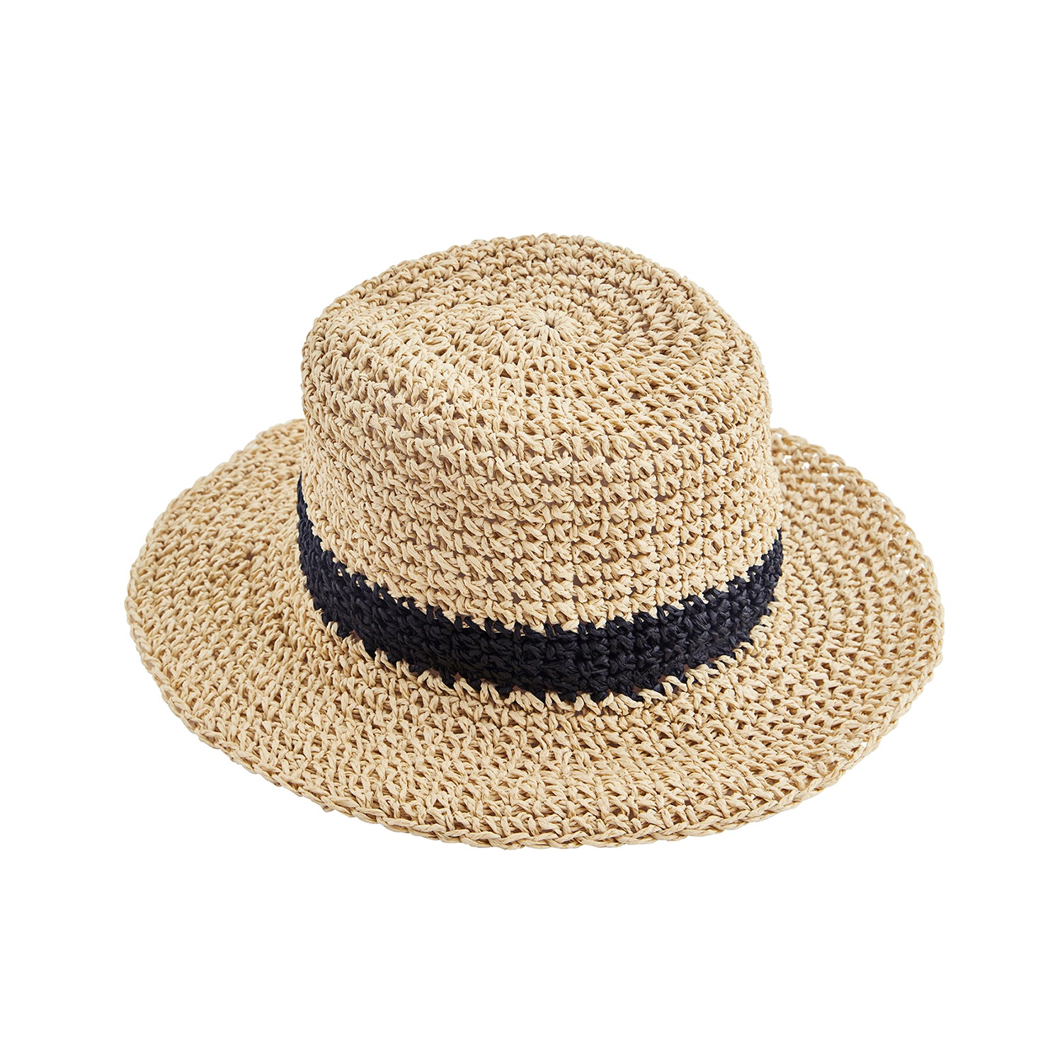 This summery crochet hat from Madam Stoltz is a must for days on the beach. Made from paper rope the hat comes in a natural colour with a black band around the base of the hat.