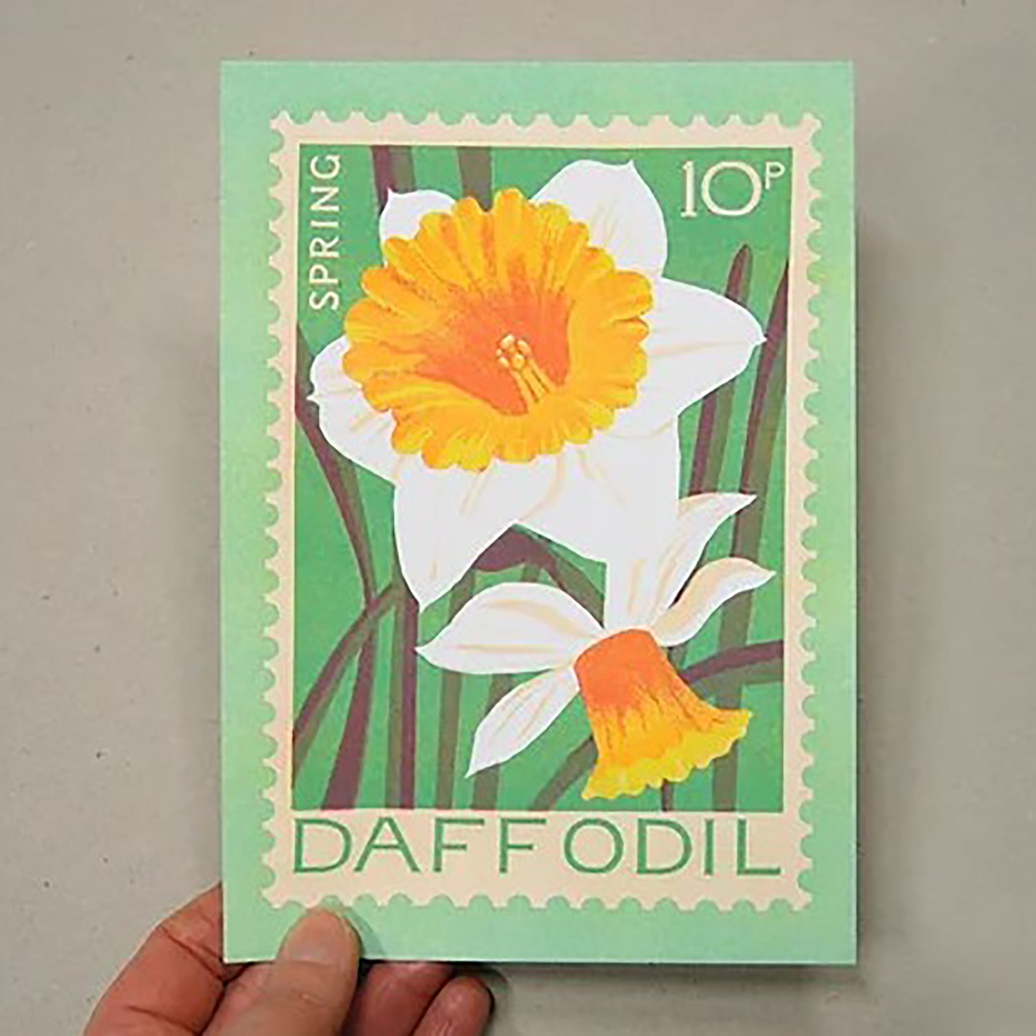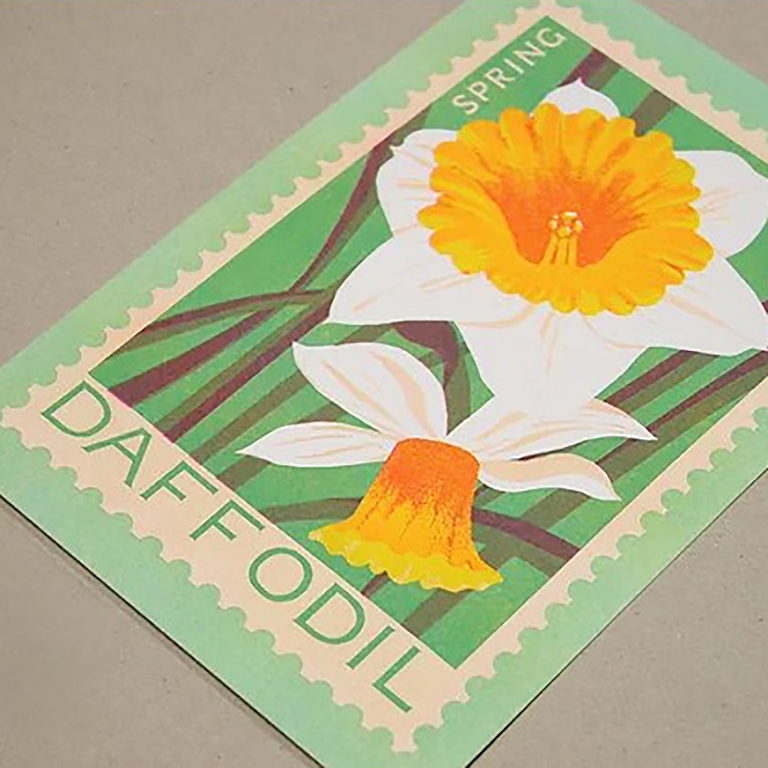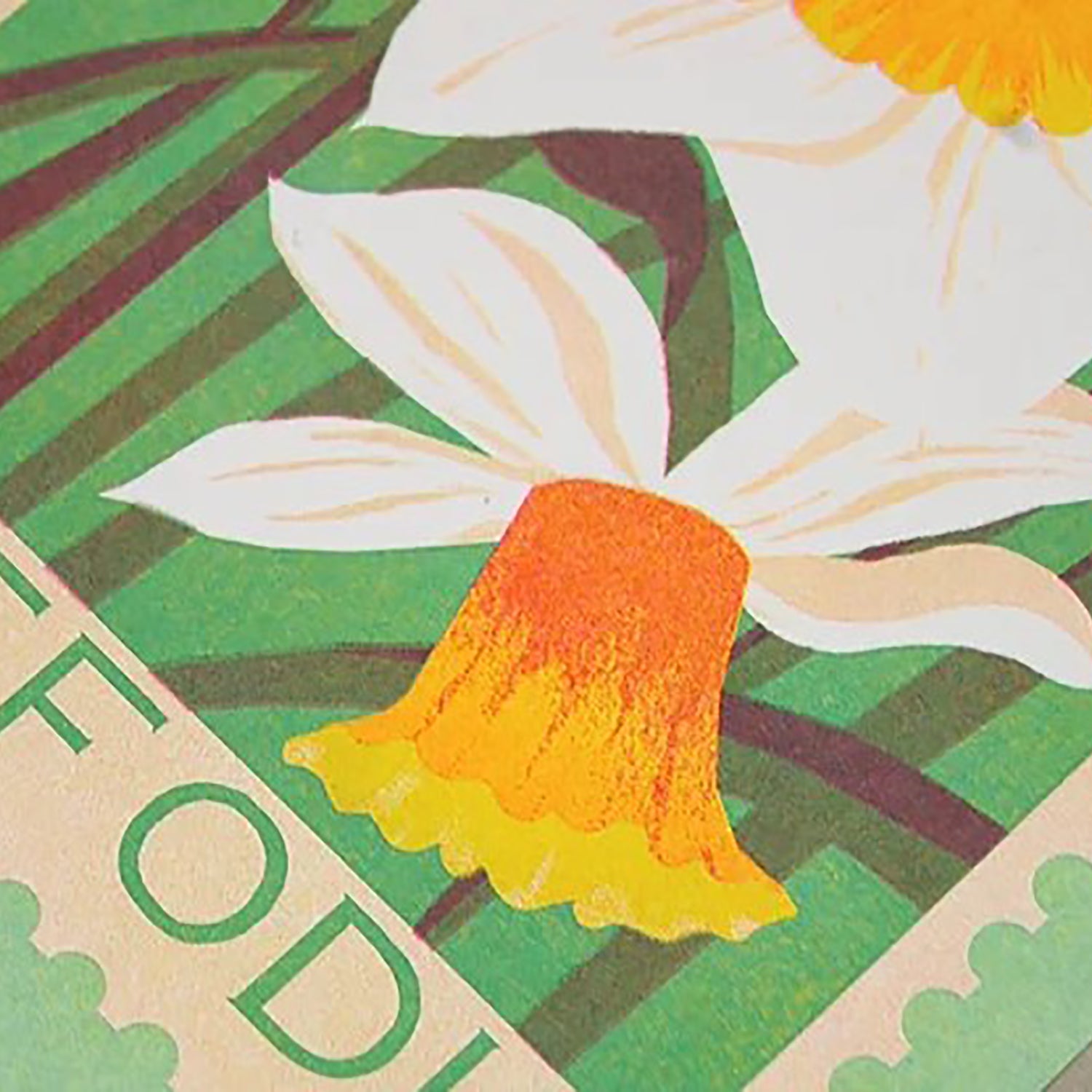 4 layer Risograph print , Printed on 170gms uncoated FSC certified paper stock using eco-friendly soy based inks. Supplied cello wrapped and Greyboard backed with a process sticker on the front. Printed in London by specialist Risograph studio Earthbound Press.