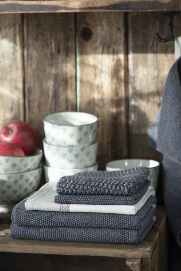 This knitted cotton hand towel from Ib Laursen's Mynte collection comes in this beautiful melange of dark & light grey. It features a lovely textured and soft feel. Ideal for both kitchen and bathroom use.