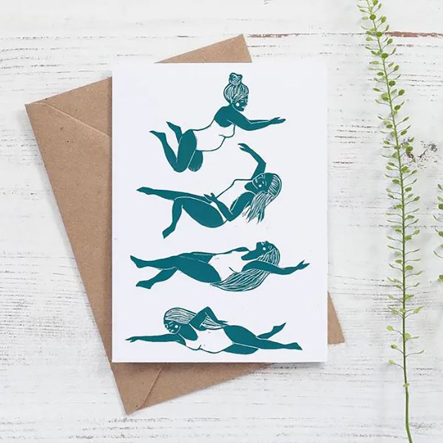 Blank inside with a brown Kraft envelope, and made from recycled card stock. Rectangle shape, measuring 7cm by 5cm. Digitally printed, taken from original linocut designs.