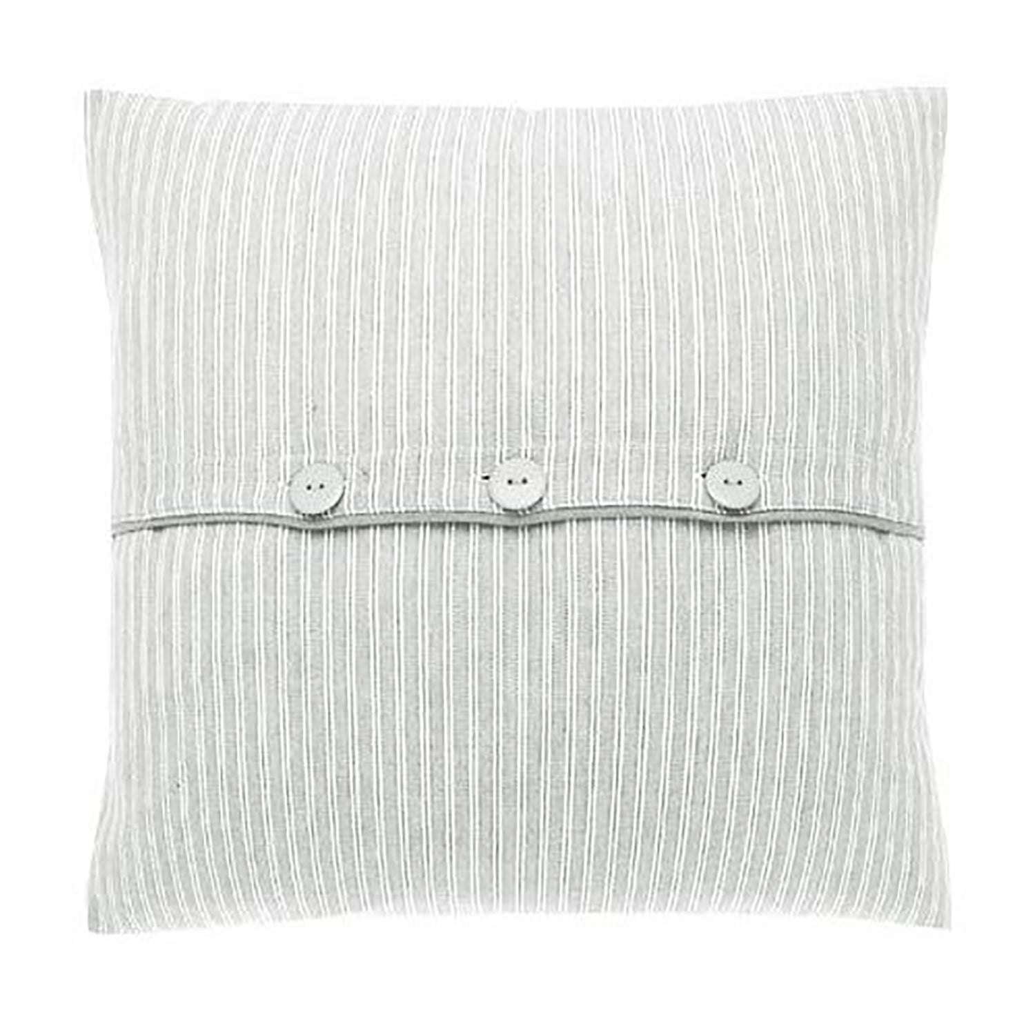 Dove Grey Ticking Stripe Button Cushion Cover, 43 x 43cm