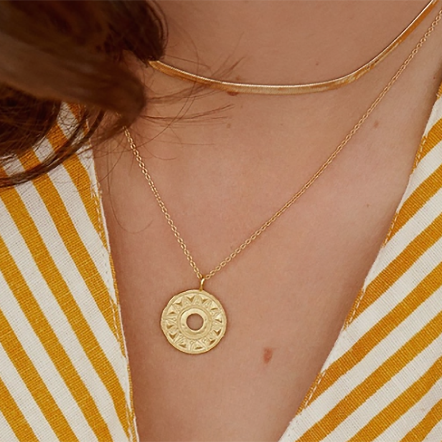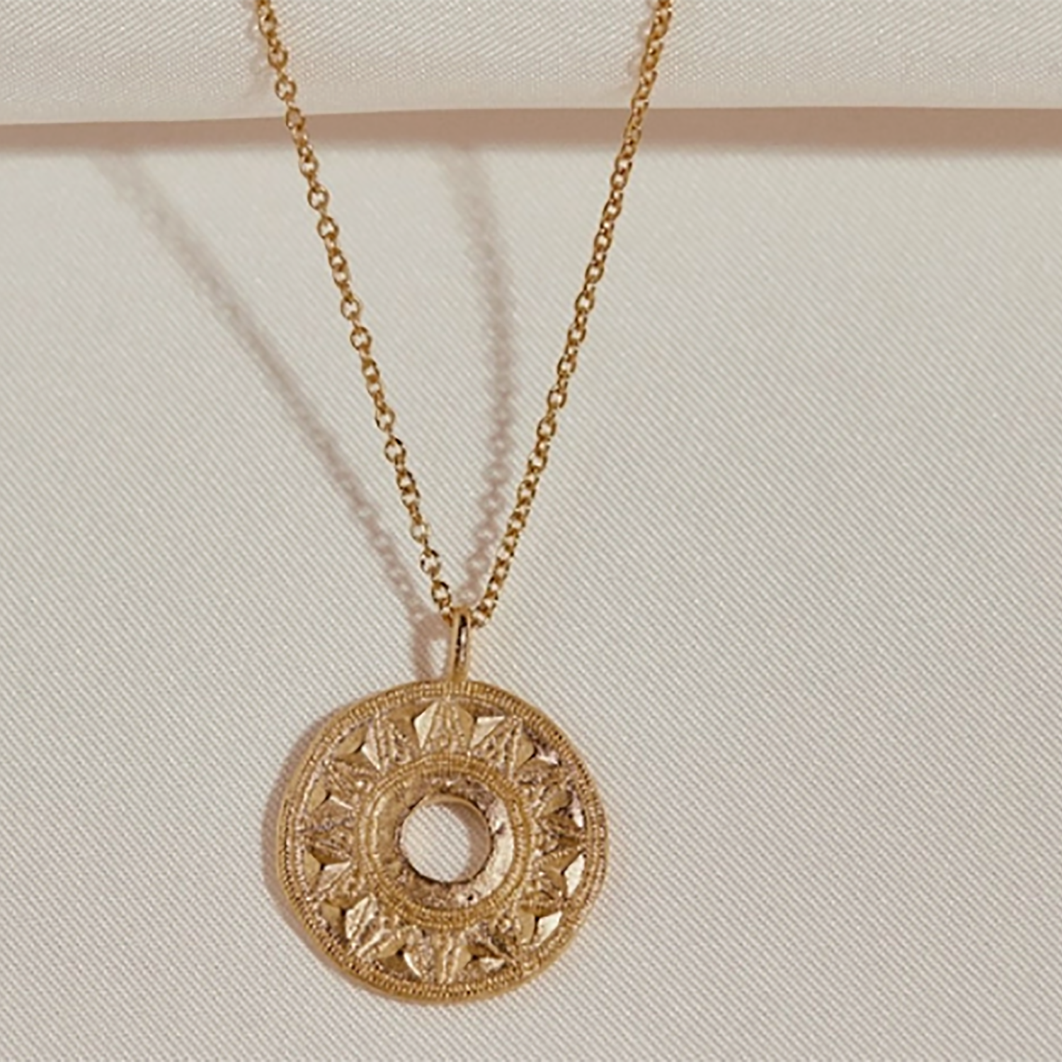 Inspiration: Inspired by Sumerian folklore, this necklace uses patterns of the sun the Ancients used to describe the eternal life force within us.