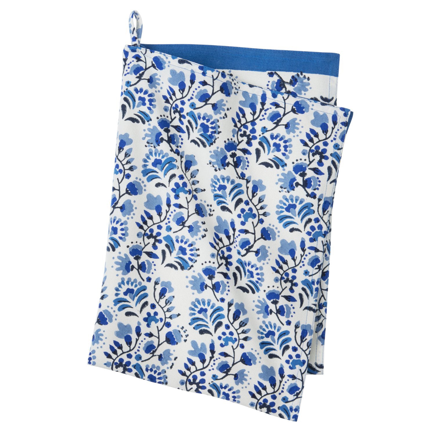 Riviera Blue 'Marigold' Block Print Tea Towel