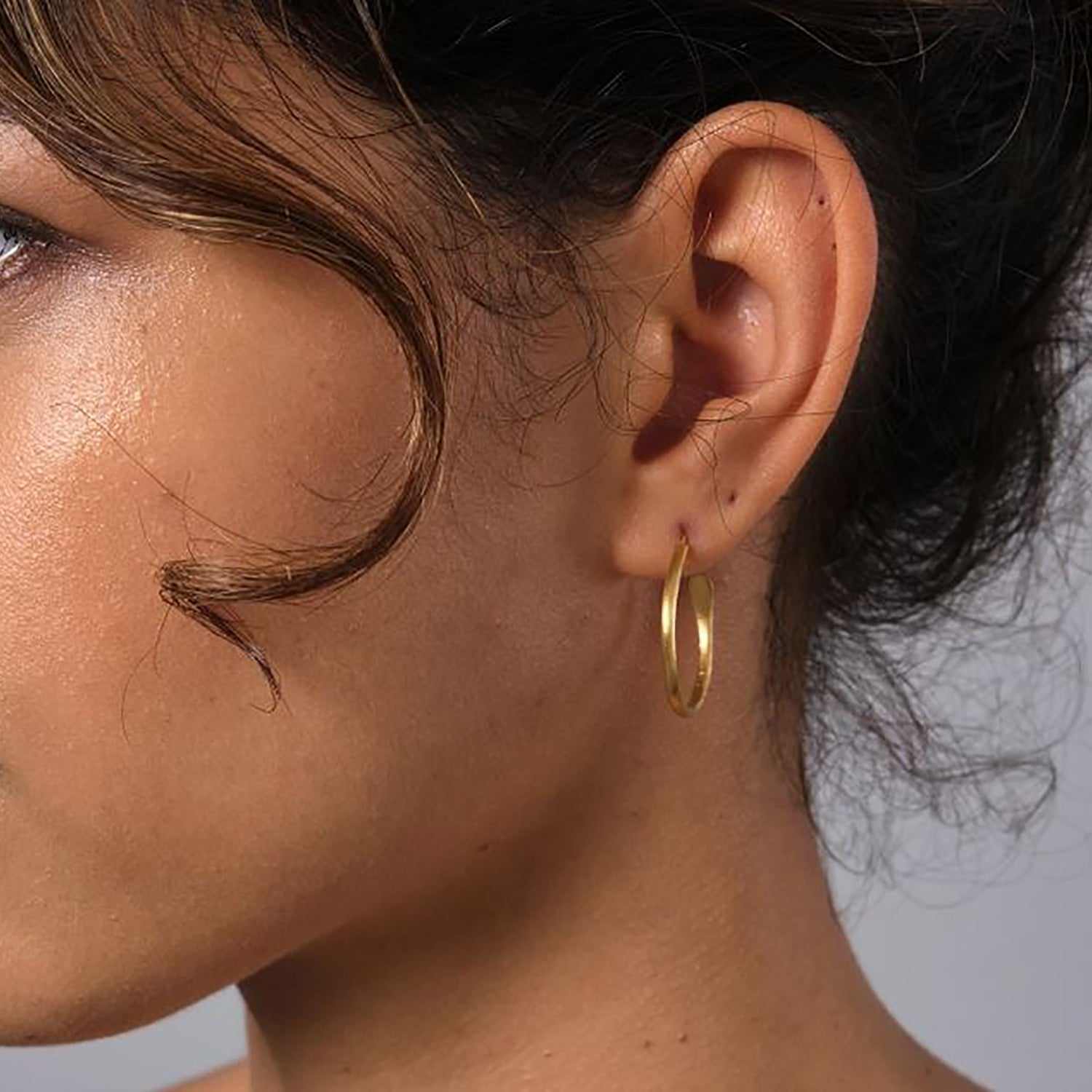 Strips of brass rod are skilfully hammered to create the subltle light-catching texture and round form of each piece. The collection is finished with a layer of plating in 22ct gold. Handmade by the women at the Flowering Desert Project in India.