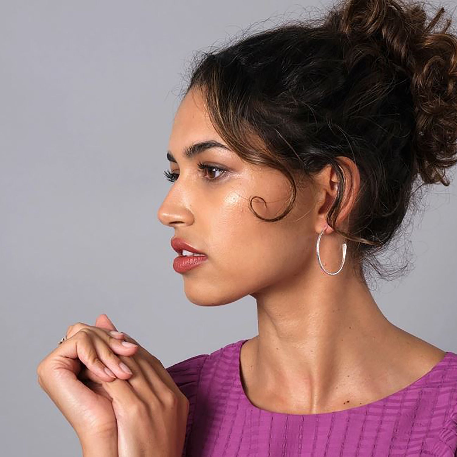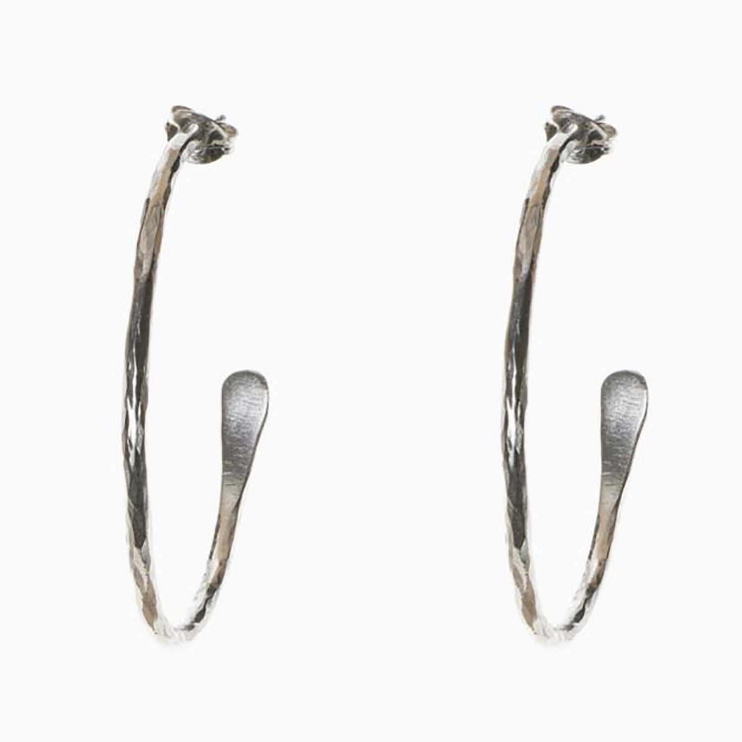 Strips of brass rod are skilfully hammered to create the subtle light-catching texture and round form of each piece. The collection is finished with a layer of plating in sterling silver. Handmade by the women at the Flowering Desert Project in India.
