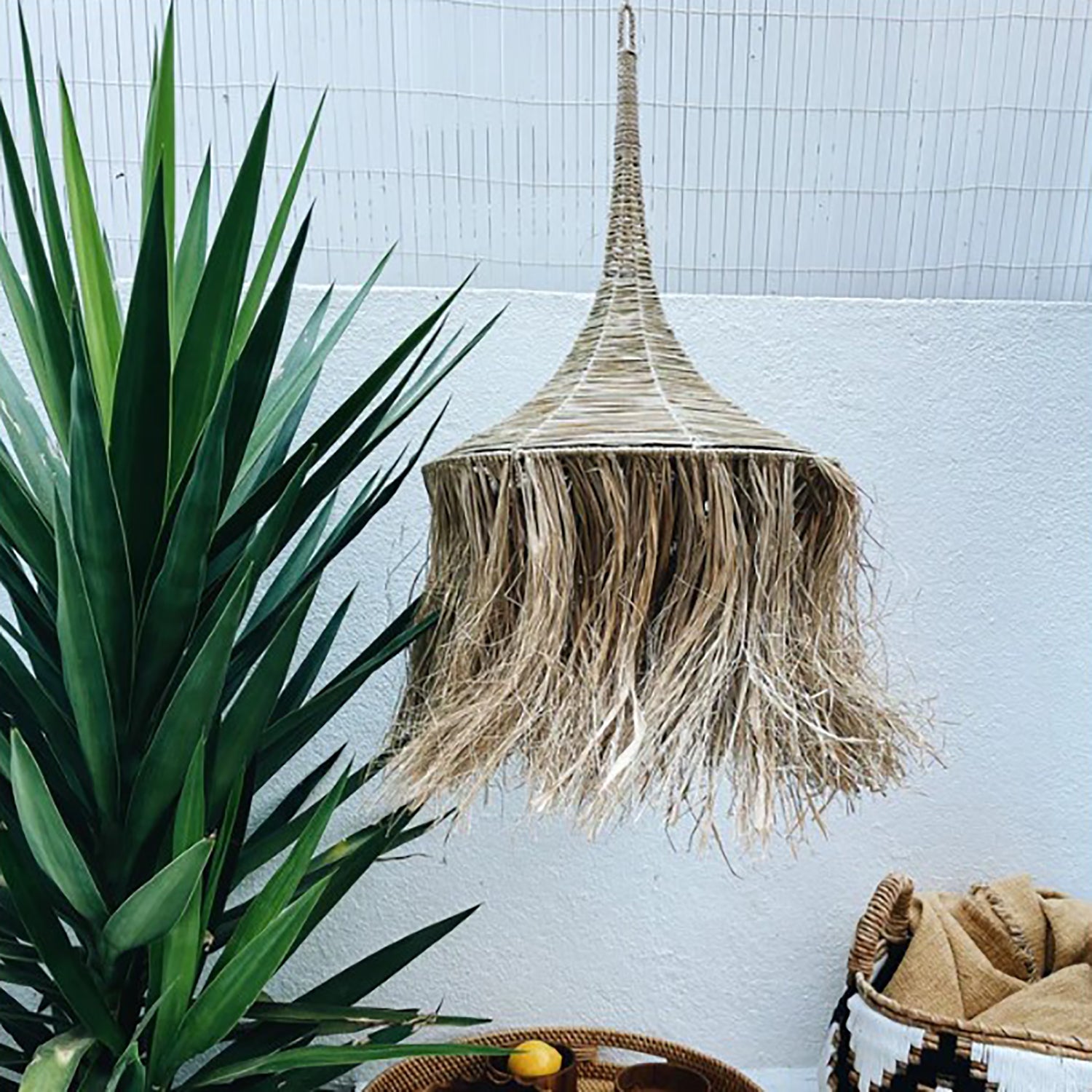 'Fatumea' Natural Raffia Fringe Lampshade