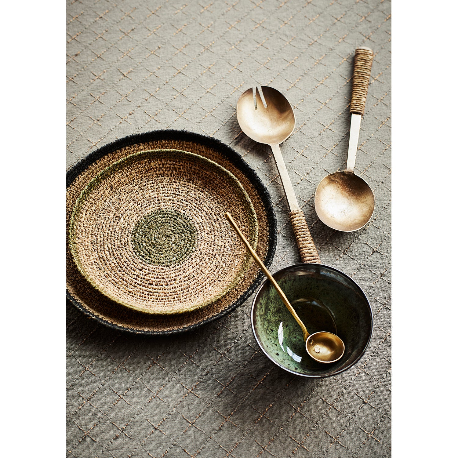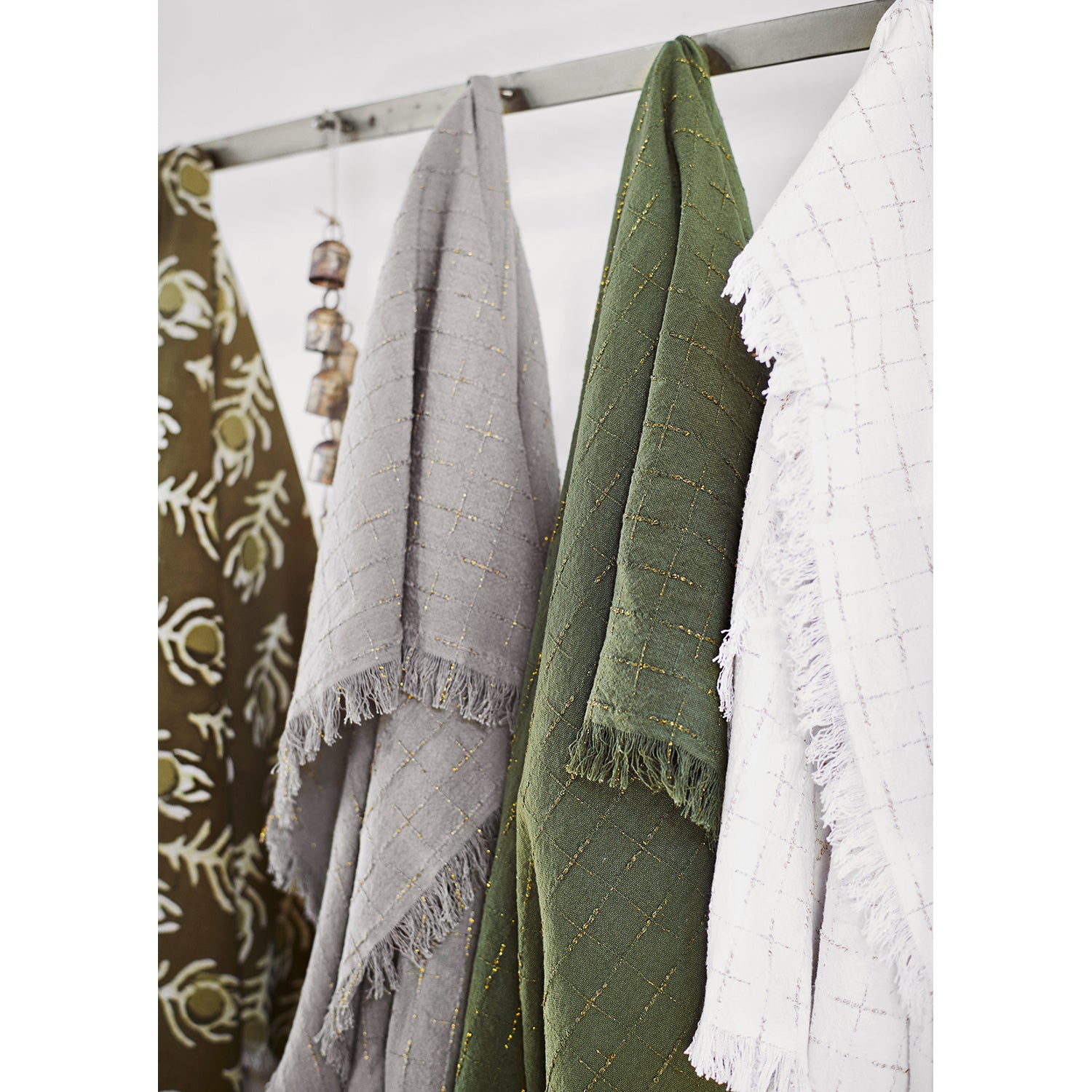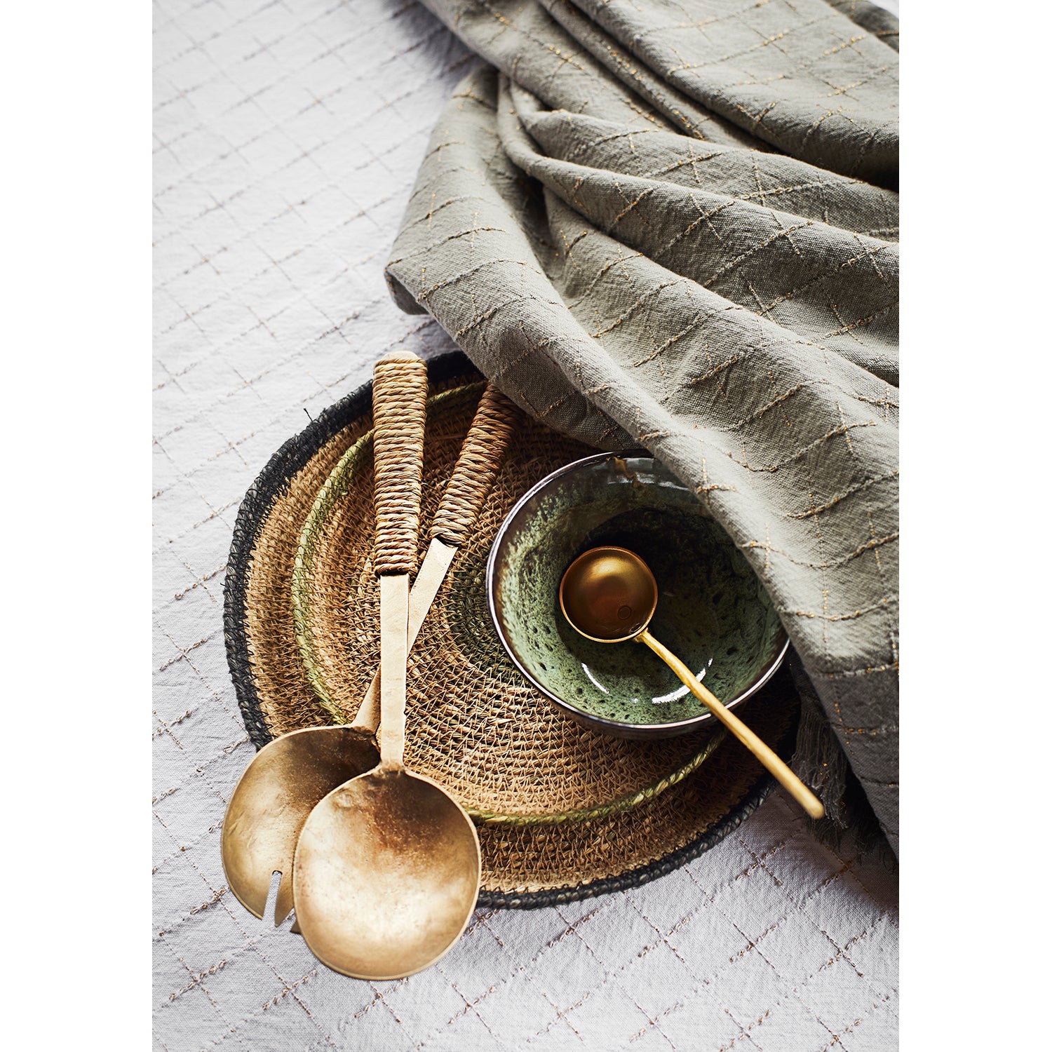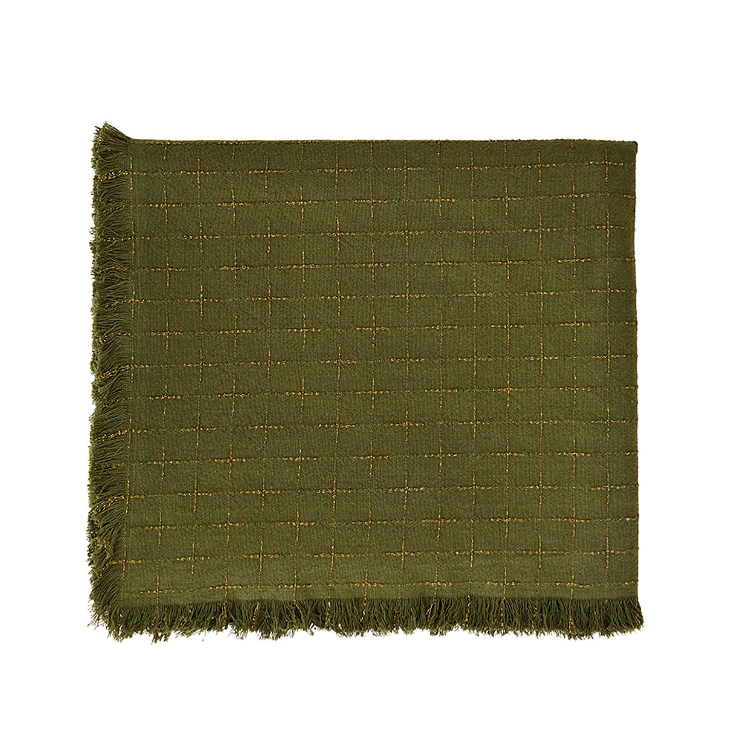 This woven cotton tablecloth is checkered with a golden lurex thread that adds the perfect amount of glamor to your table setting.