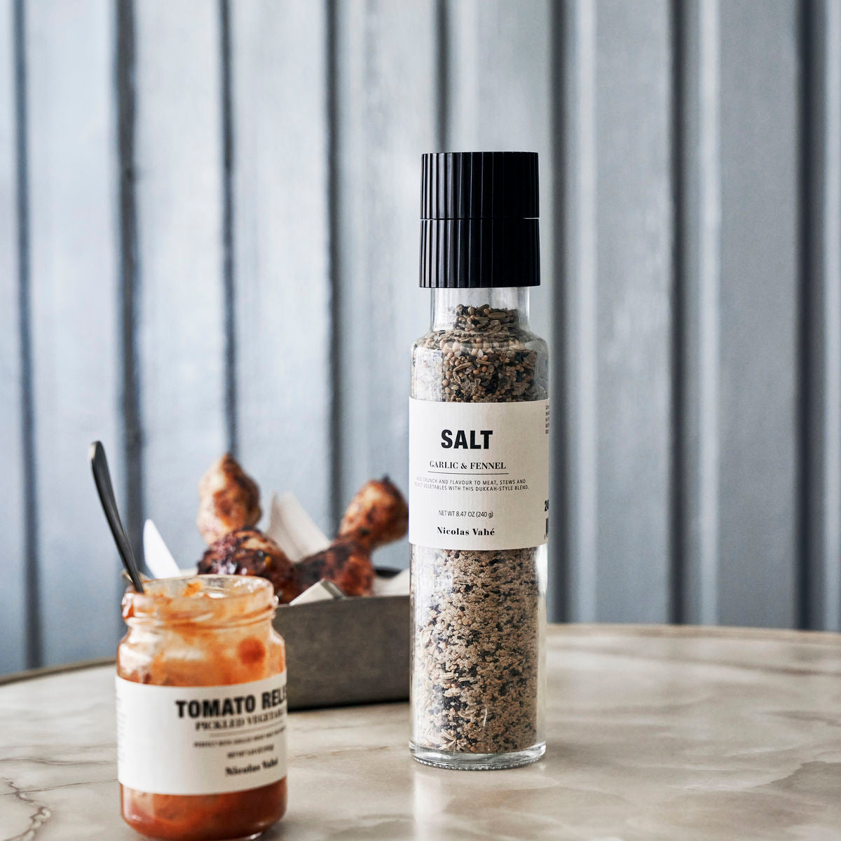 Turn your soups and stews into a culinary experience with this garlic and fennel salt from Nicolas Vahé. A touch of black pepper, anise, ginger and lemongrass ends this salt blend on an exotic and interesting note. You could even use it as an alternative to a dukkah, the popular spice blend that revitalises any recipe. The mill comes with a ceramic grinder which gives you finely ground spices. This releases the oils for more aroma and flavour in your dishes.