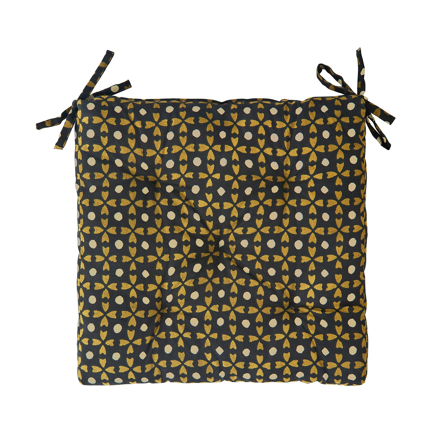 Black & Mustard Block Print Cotton Chair Pad