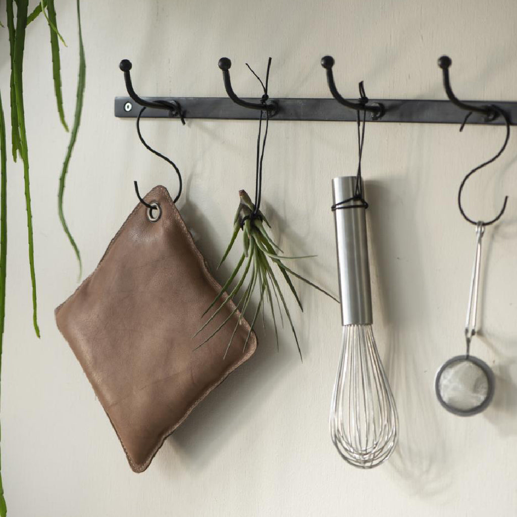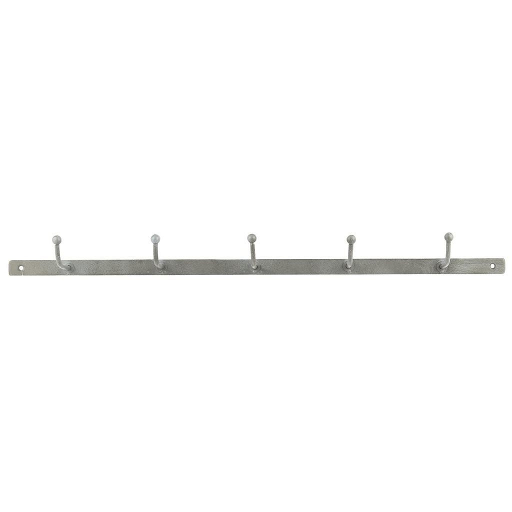 Elegant and industrial grey metal coat rack with 5 hooks. Ideal for de-cluttering your home. The rack measures to 63.5cm in length, and features holes at either end by which to screw it into the wall. Also comes in white.
