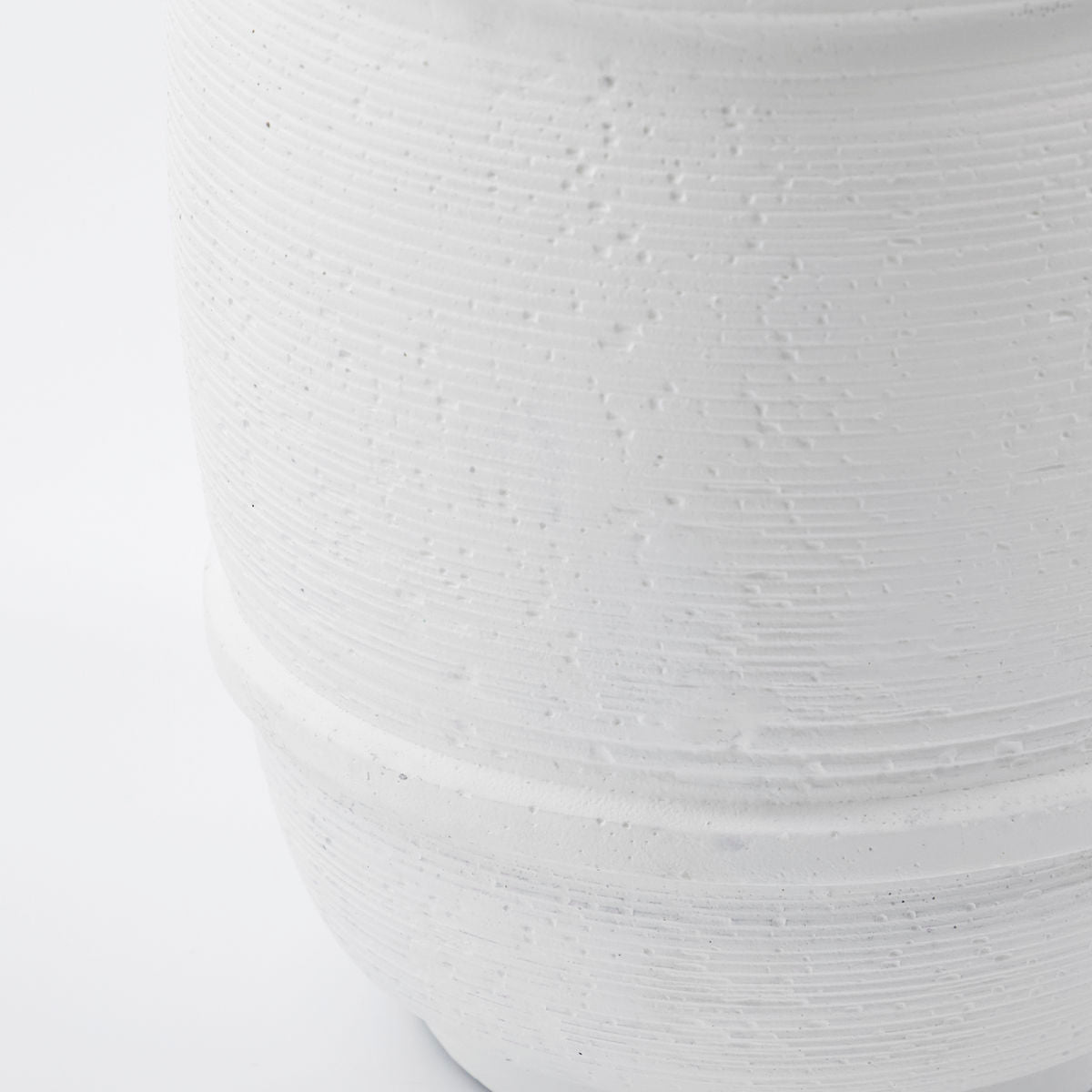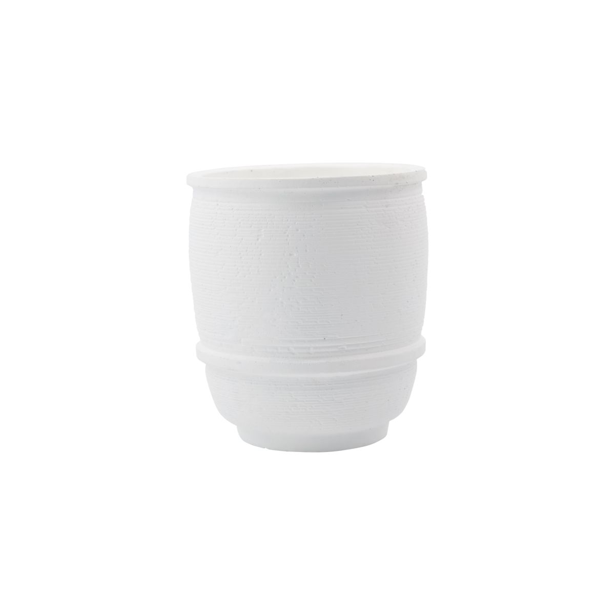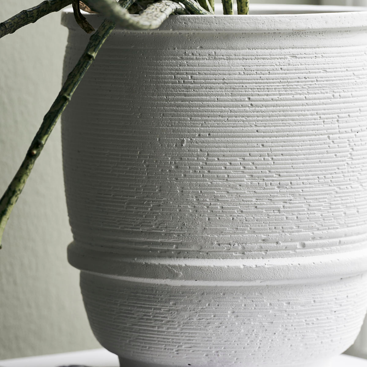 Give your home décor a bright accent with 'Ground', a white cement planter designed by House Doctor. With subtle grooves in the surface, the overall look is down to earth yet with fine detailing. With a colour that is almost pure white, the planter is bound to light up your windowsill, coffee table or shelf in the living room. Let it grab the attention by placing it on its own or balance the bright white with décor in silver or transparent glass. Also available in a larger size. Because the planter is handmade, the finish, size and colour may vary. The planter has a rustic look. Please note that the planter is not completely waterproof due to the porous nature of the material
