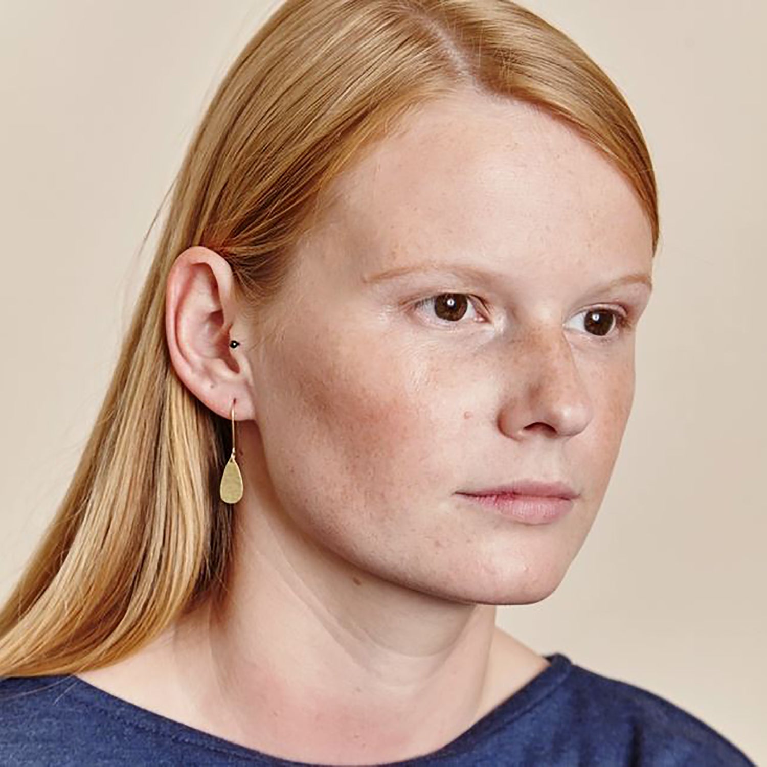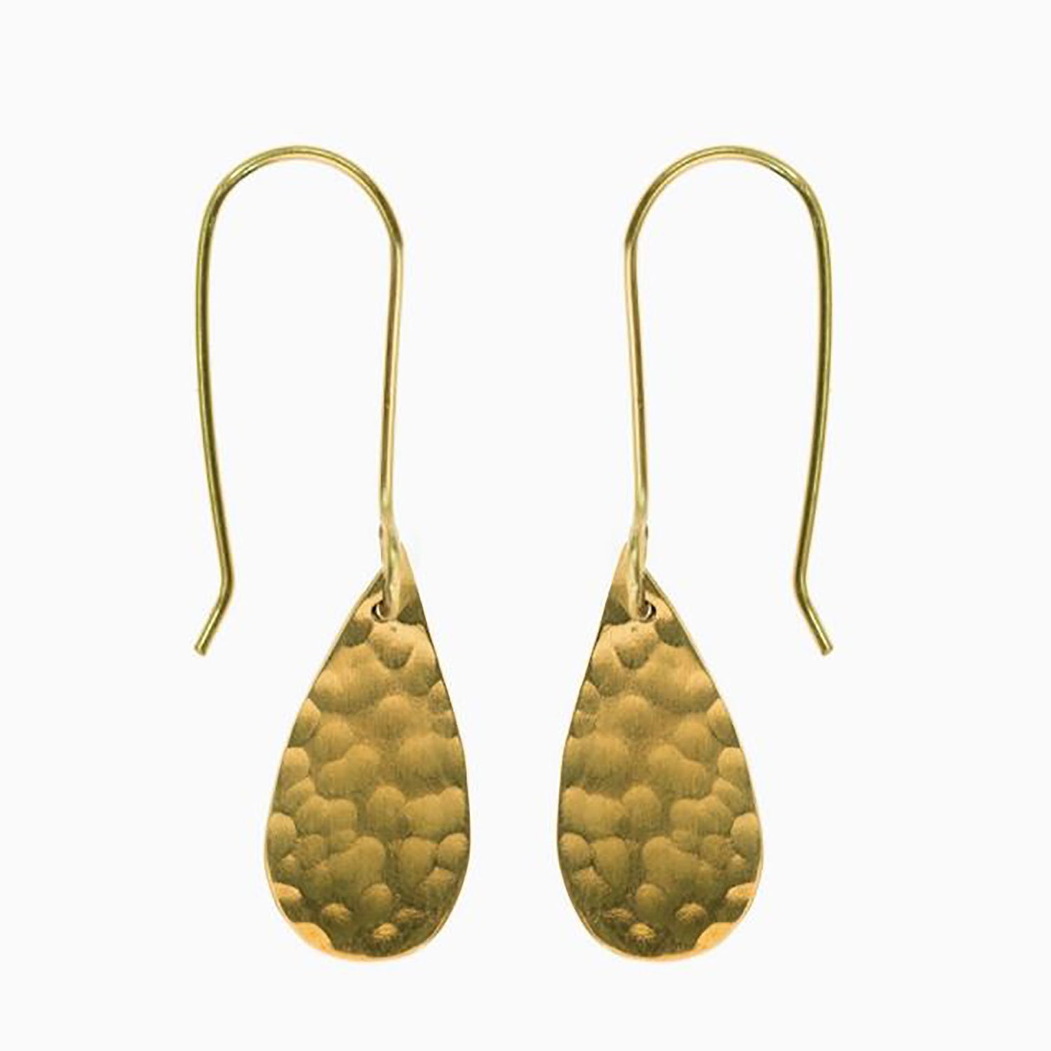 These earrings are hand cut from brass sheet and finished using a specialist hammer to give it texture. This ethical jewellery is handmade by the Flowering Desert Project which provides training and fairly paid work for women from rural communities in Tamil Nadu, India. Made from brass with hypoallergenic brass earring hooks.